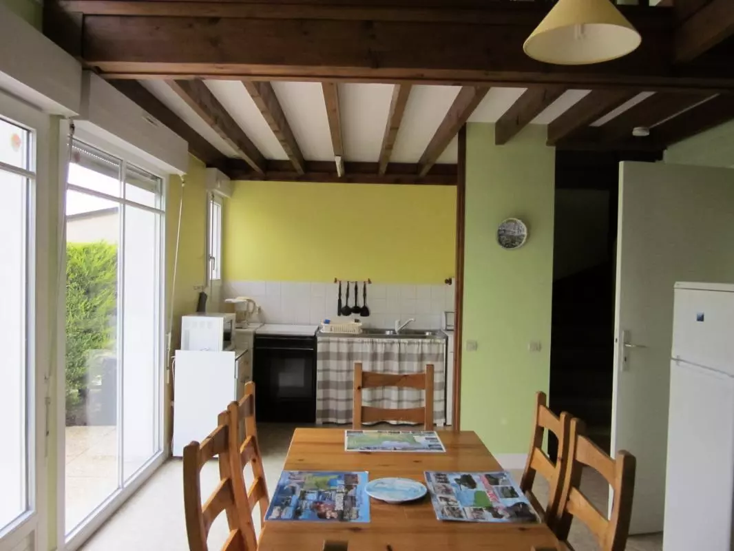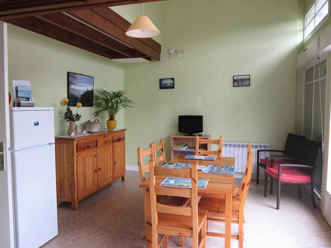 Maison mitoyenne à une autre location. Séjour. Coin-cuisine. Mezzanine. CH 1 : 1 lit 140. CH 2 : 2 lits 90. 1 canapé convertible. Salle d'eau. WC. TV. Lave-linge. Draps et linge de maison non fournis. Chauffage électrique en supp. Terrain clos privé. Terrasse. Salon de jardin.2 transats. Barbecue. Ces deux gîtes sont situés au centre du Parc Naturel Régional des Marais du Cotentin et du Bessin. Ces derniers s'inondent en période hivernale et c'est tout le village qui se trouve sur une presqu'île! Plage du débarquement à 15 km (Utah Beach). A proximité d'une voie ferrée.