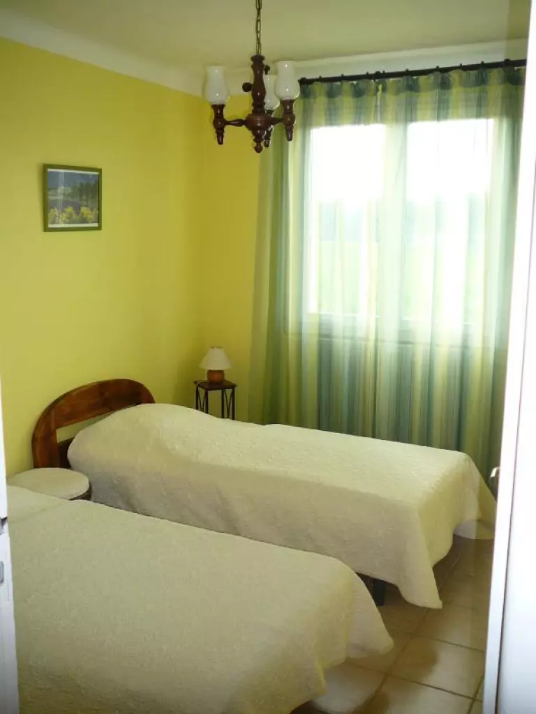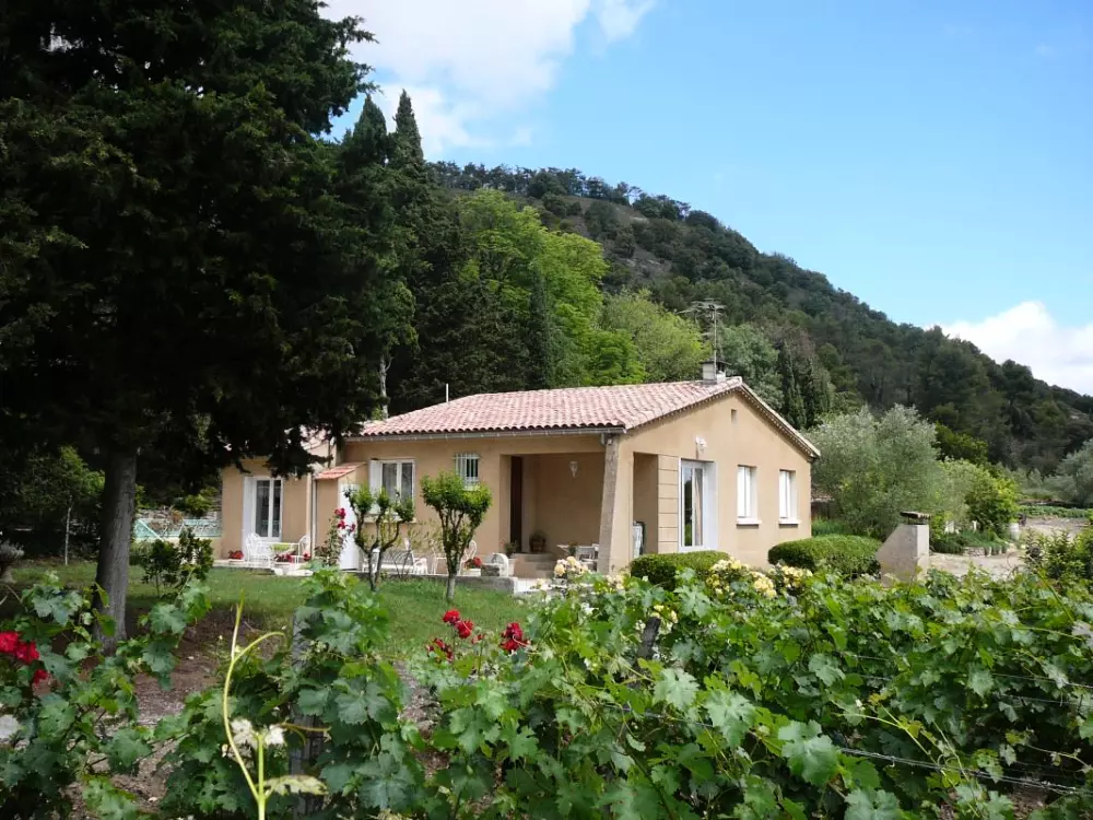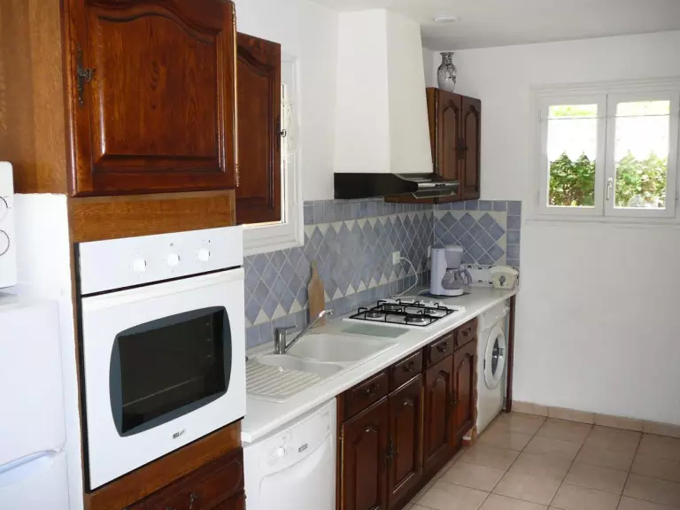 Tout en rez-de-chaussée: grand séjour avec TV, coin repas. Cuisine indép (Lave linge, lave vaisselle, Micro ondes,FRIGO-CONGEL) donnant sur la terrasse avec salon de jardin et barbecue. 3 chambres (2 lit 2 pers.-2 lits 1 pers.). SDE. WC. Chauffage central au gaz 50?/semaine. Parking privatif devant le gîte. Gîte indépendant sur un domaine viticole arboré de pins parasols, aux portes de Limoux (petite ville célèbre pour son carnaval et sa Blanquette). Grande terrasse face aux vignobles, jardin.Tous les commerces sont à 500m. Piscine à 2 kms.