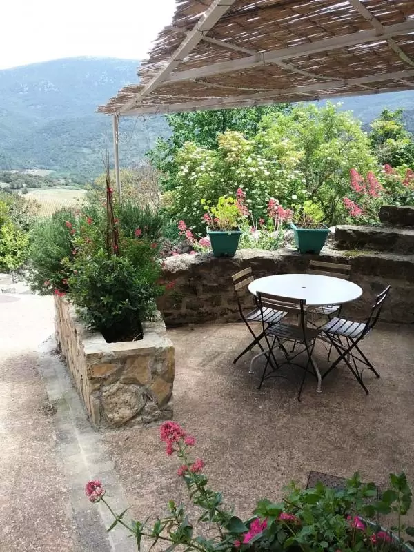 Séjour cuisine bar avec cheminée (bois fourni). Coin salon. A l'étage: 2 chambres avec 1 lit de 2 pers et 2 lits 1 pers. Salle d'eau. WC ind. Chauffage électrique en sus. Parking sur place. Taxe de séjour 0.50?/p/j Gîte communal situé dans un petit village des Hautes Corbières avec terrasse pergola en devant de porte et un point de vue sur les paysages sauvages des Corbières. Sites du Pays Cathare à 15km, mer à 45mn. Randonnées pédestres et VTT sur les sentiers du pays.