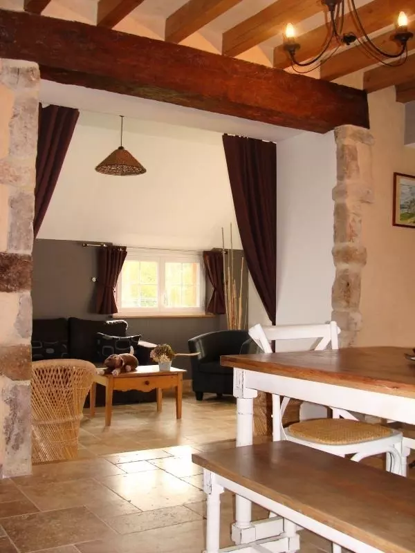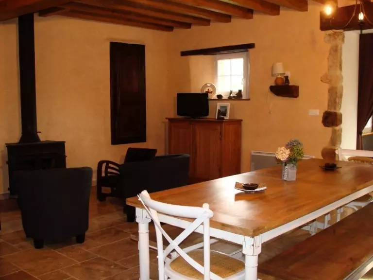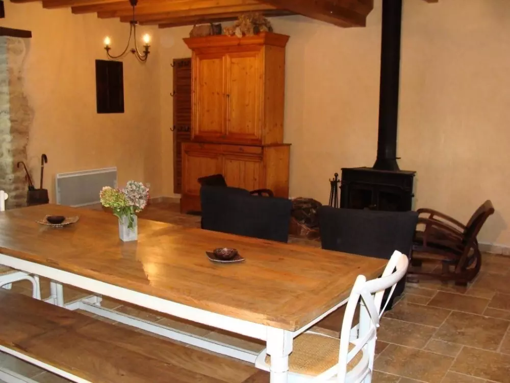 Maison indépendante. Séjour. Salon. Coin-cuisine. CH1: 1 lit 160. CH 2 : 1 lit 140. CH 3 : 3 lits de 90 dont 2 superposés. CH 4 : 2 lits 90. 1 lit bébé. Canapé converible. Salle de bain. Salle d'eau. 2 wc. Poêle à bois. TV. Wi-fi. Lave- linge. Lave- vaisselle. Sèche-linge. Cellier. Chauffage électrique en supp. Draps en location. Linge de maison non fourni. Service ménage en supp. Terrain clos privé. Terrasse. Salon de jardin. Portique. Barbecue. Terrain de pétanque. Plan d'eau. Au coeur du Parc Naturel Régional des Marais du Cotentin et du Bessin, le château des Vignes se dresse fièrement sur sa verte colline dominant la vallée de la Vire. Loïc et Isabelle ont aménagé avec soin un gîte familial dans un bâtiment annexe. Les enduits chanvre et chaux lui confèrent une atmosphère chaleureuse, le vieux pressoir et les anciens objets locaux offrent un regard sur le patrimoine normand !