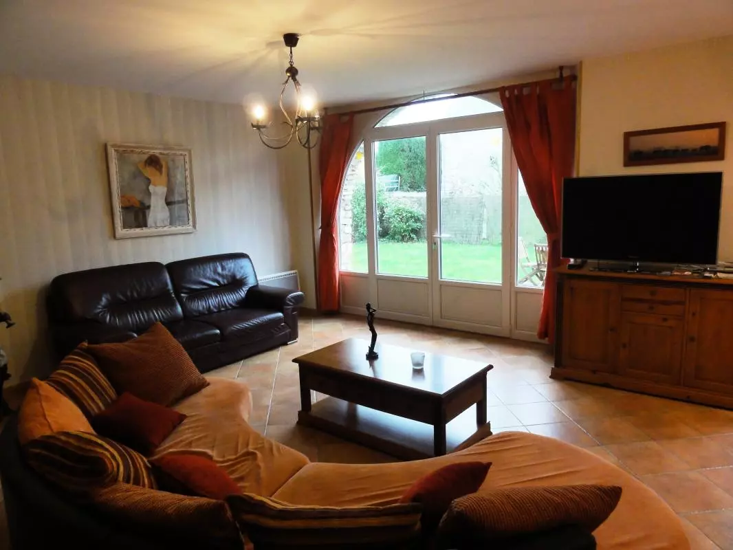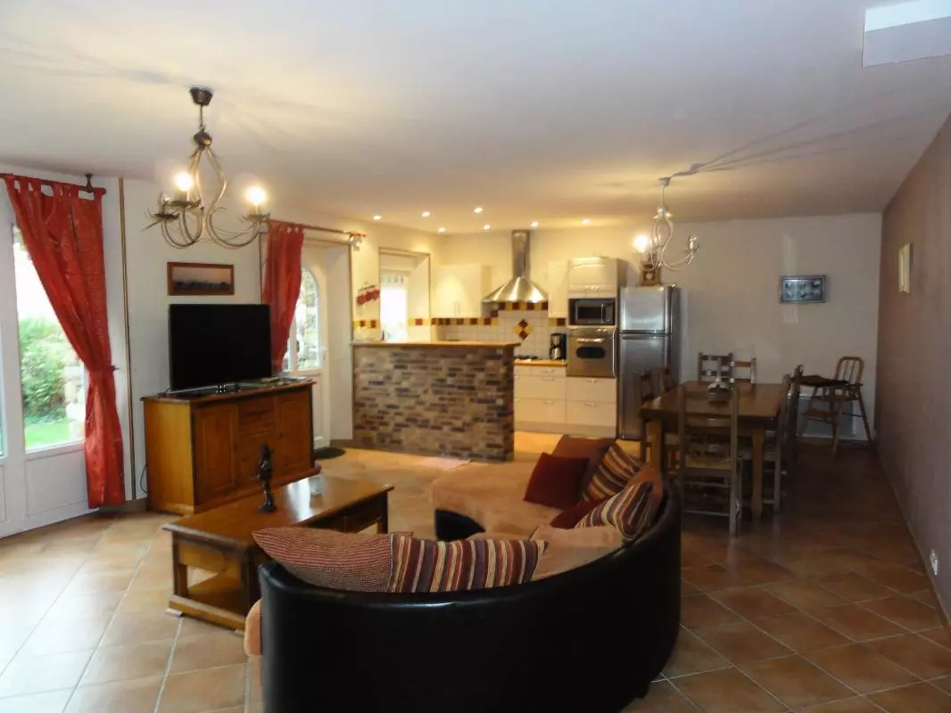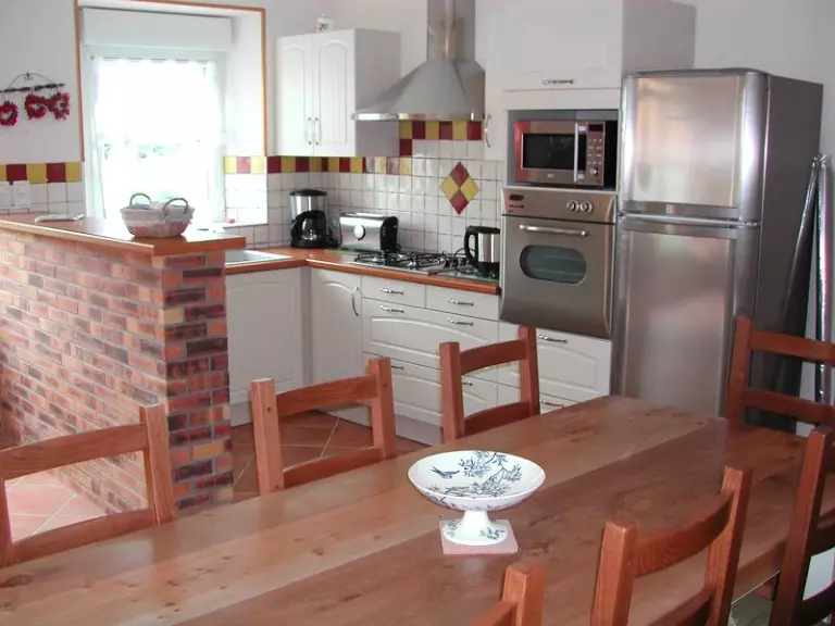 Maison indépendante entièrement en rez-de-chaussée. Séjour. Coin-cuisine. CH 1 (1 lit 140). CH 2 (1 lit 140). CH 3 (2 lits 90). Salle d'eau. Wc. TV. WIFI. Lave-linge. Lave-vaisselle. Draps en location. Service ménage en supplément. Chauffage électrique en supp. Terrain clos privé. Salon de jardin. Barbecue. Abri bois. Balancelle. Au sein d'un village de campagne, à quelques encâblures des plages, les propriétaires ont aménagé avec soin près de chez eux un gîte confortable de plain-pied. On apprécie notamment le vaste séjour où la jolie voûte en pierre désormais vitrée offre la lumière.