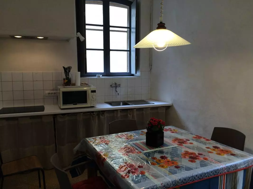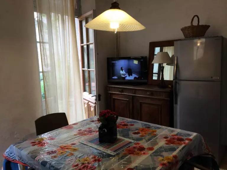 Gîte de plain pied, mitoyen au propriétaire avec un séjour-cuisine. Salle d'eau-wc. 1 chambre ( 1 lit 2 pers. - 1 canapé lit 1 pers). Chauffage électrique en sus. TV. Lave-linge. Ensemble de 2 gîtes aménagés dans une propriété de caractère en bordure de l'étang, donnant dans une cour commune au milieu d'un parc ombragé. Parking privé. Salon de jardin et barbecue. Ping pong. Taxe de séjour à régler sur place.