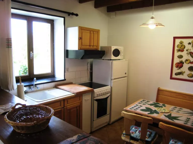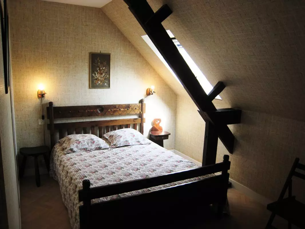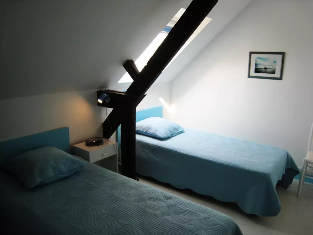 Maison indépendante. Rez de chaussée : Cuisine ouverte sur séjour -salon. Salle d'eau. Wc indépendant. Etage : CH 1 : 1 lit 140. CH 2 : 2 lits de 90. Cheminée. TV (chaines TNT + anglaises). Lecteur DVD. Lave-linge. Lave-vaisselle. Draps et linge de maison non fournis. Service ménage compris. Chauffage électrique compris. Toutes charges comprises. Terrain clos privé. Ancienne bergerie pour ranger les vélos(non clos). Terrasse exposée sud. Salon de jardin. Transats. Barbecue. Emplacement réservé sur le côté du gîte pour 1 véhicule. Charmante maison à seulement 4 km de la côte située dans un hameau de campagne. Idéalement placé pour des balades en vélo dans les petites routes environnantes. Possibilité de promenade dans un bois à 1km du gite. Chambres mansardées avec poutres apparentes.