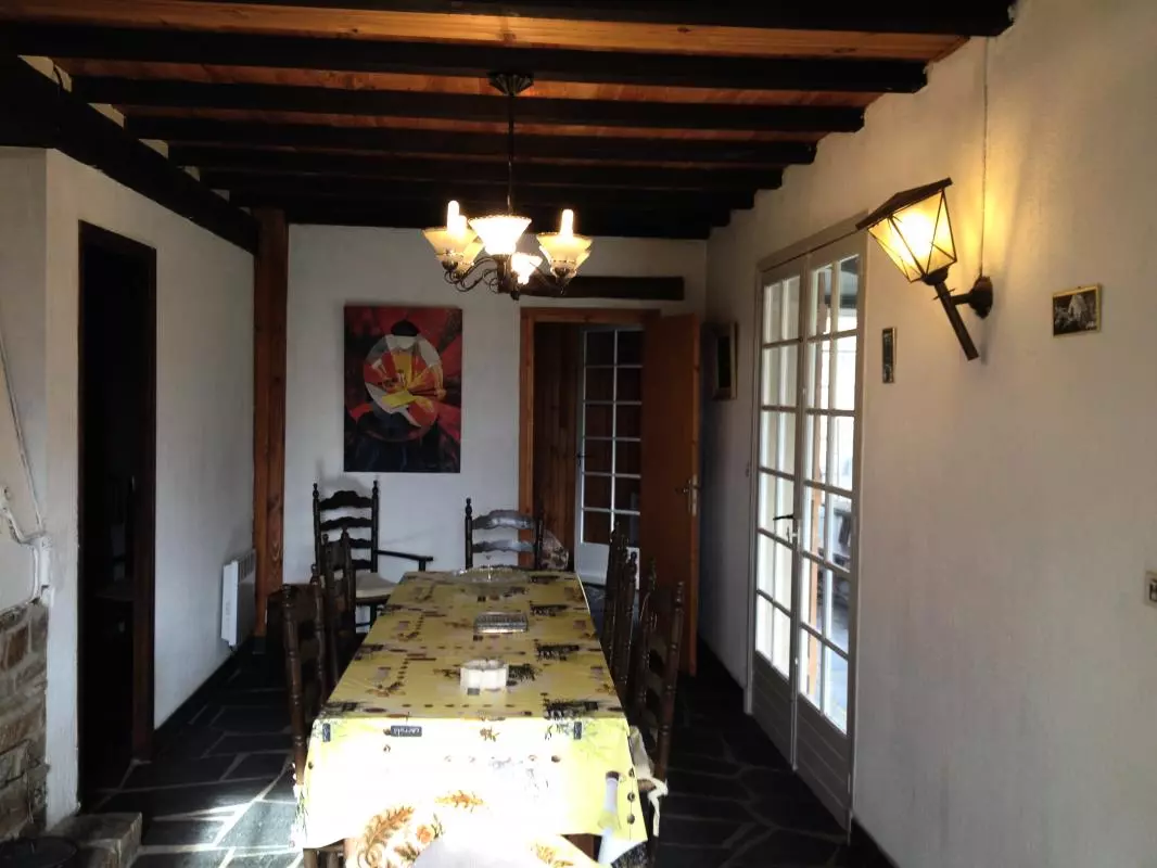 Grand séjour avec cheminée insert. Cuisine. 3 chambres avec 2 lits 1 pers et 2 lits de 2 pers. Salle d'eau.WC indépendants. Bois à disposition. Cellier avec frigo et congélateur complémentaire. Garage en sous-sol. Chauffage inclus. Taxe de séjour 0.70?/p/j. Gîte indépendant sur un grand terrain arboré en prairie de 1500m2, en bordure de rivière avec grande terrasse(30m2)couverte avec salon de jardin. Nombreuses randonnées à faire,lac de Pradelles à 1kms
