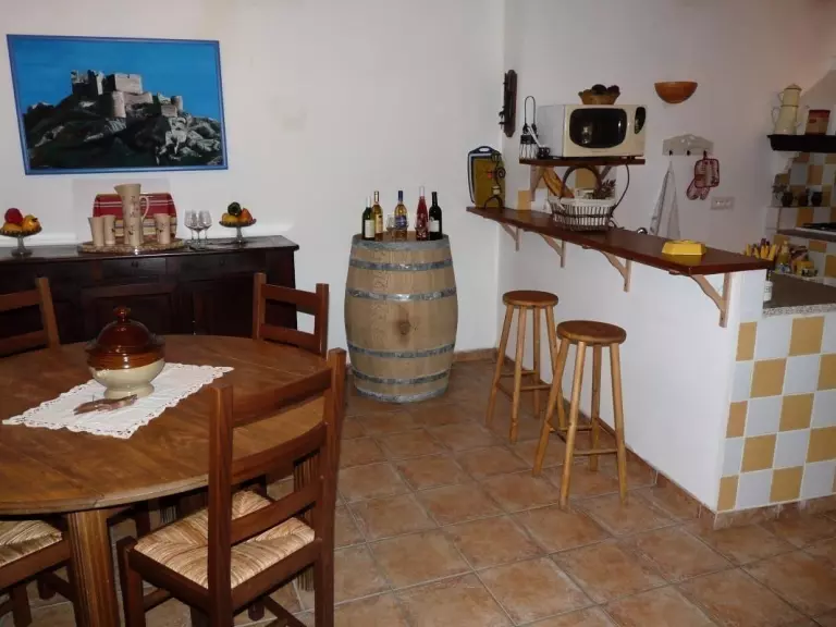 Gîte avec petite cour en patio de 9m², avec salon de jardin et barbecue. Séjour avec cheminée, cuisine, WC. Au 1er : 3 chambres (2 lits 2 pers, 1lit 1 pers). Salle d'eau-WC. Chauffage en sus. Wifi gratuit dans le hall de la mairie. Possibilité de 2 personnes supplémentaires nous consulter. Gîte de caractère situé dans un petit village des hautes Corbières entouré de vignobles, Nadine et Jean-René, viticulteurs en cave coopérative, vous accueilleront et vous parleront de leur exploitation agricole. Une visite des caves et une dégustation de leurs meilleurs crus vous sera proposée. Baignade naturelle eau tiède sur la commune à 3km (non surveillée). Châteaux du Pays Cathare à 15 minutes. Gîte décoré pour les fêtes de fin d'année.