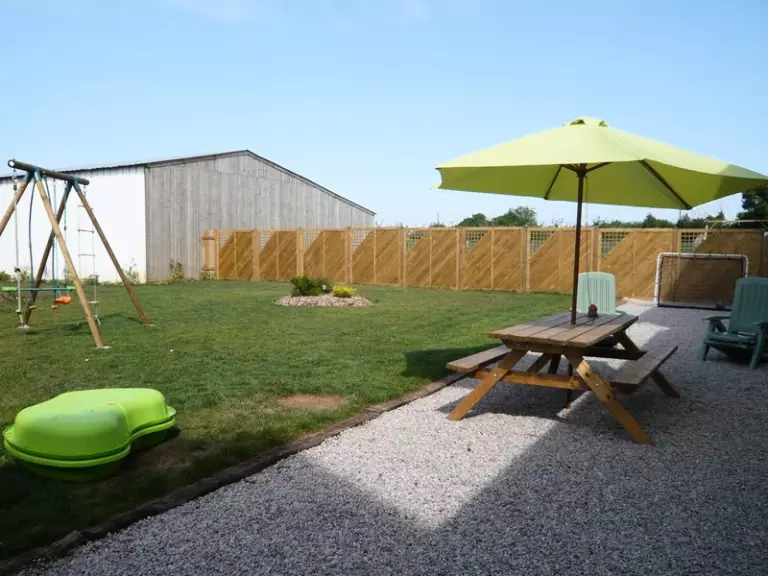 Maison mitoyenne au propriétaire et à une autre location. Séjour. Coin-cuisine. Ch 1 : 1 lit 140 et un lit bébé. Ch2 : 2 lits 90. Salle d'eau. 2 WC. TV. Lecteur DVD. Lave-linge. Lave-vaisselle. Equipement bébé à disposition. Canapé convertible 1 pers. Toutes charges comprises. Lits faits et linge de toilette fournis. Service ménage compris. Terrain clos privé exposé sud à l'arrière. Cour close commune à l'avant. Table pique-nique. Transats. Barbecue. Portique. Bac à sable. Table de ping pong et trampoline en usage commun. Abri. Vélos à dispo sur demande. Taxe de séjour en supplément. Au sein de cet imposant bâtiment de ferme en pierre de pays, un gîte confortable vous attend. Un grand espace extérieur est disponible avec jeux pour la détente de toute la famille. Cette ferme est idéalement située entre Ste Mère Eglise et la plage (Utach Beach à 7 km).