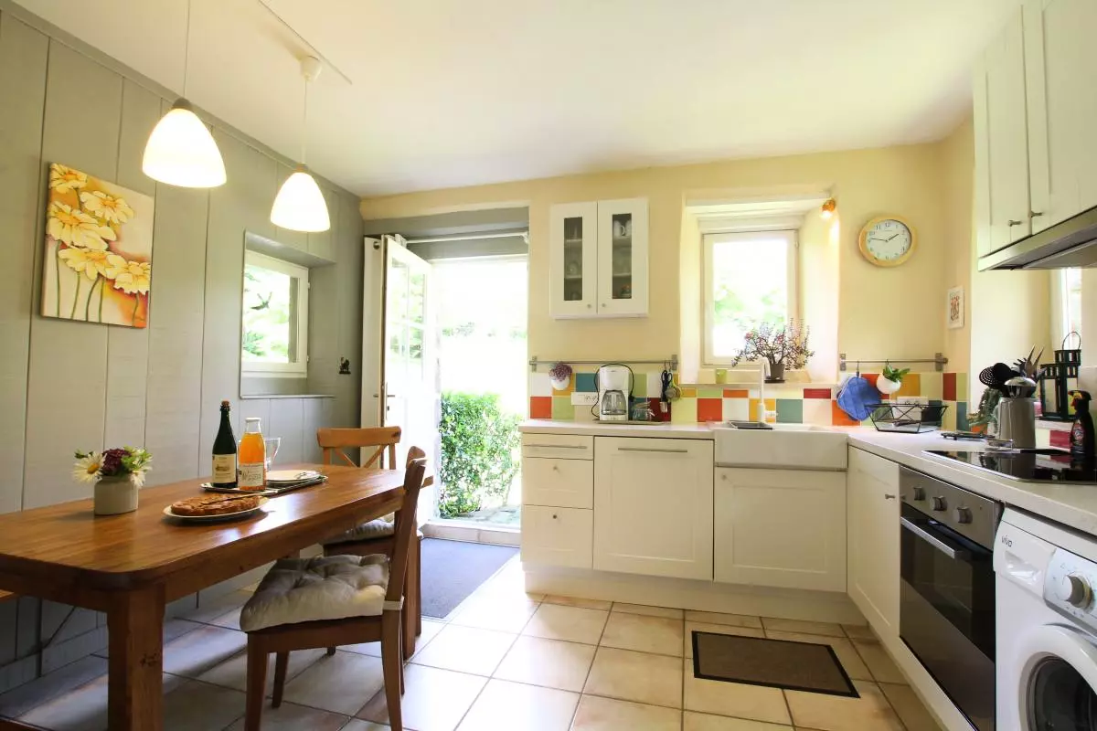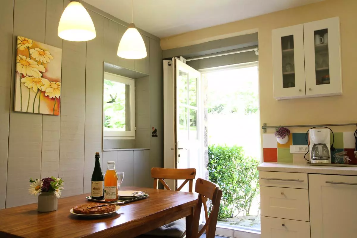 Maison indépendante. Séjour. Cuisine. Chambre 1 : 1 lit de 160. Chambre 2 : 1 lit de 140. 1 canapé convertible 1 place dans 1 chambre. 1 lit bébé. Salle d'eau. wc. Lave-linge. Lave- vaisselle. TV. Chaîne hi- fi. Chauffage par géothermie (pompe à chaleur) compris. Draps et linge de maison en location. Service ménage en supp. Terrain non clos privé. Salon de jardin. Barbecue. Parking. Possibilité de baby-sitting. Un véritable petit coin de paradis vous attend dans ce cadre champêtre enchanteur! Les propriétaires ont pris soin de réhabiliter ce bâtiment traditionnel avec des matériaux naturels et sains. Le chauffage par géothermie (au sol) et la douceur des enduits renforcent l'impression de bien être. Ce gîte a été distingué par les Gîtes de France pour son approche environnementale lors de l'Opération "Prix coup de coeur 2011". Sur demande, possibilité d'atelier de taille de pierre et sculpture.