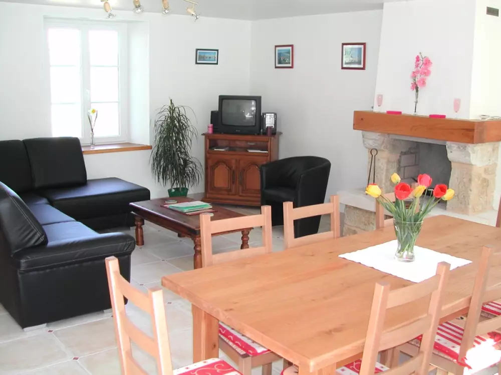 Maison indépendante. Séjour. Cuisine. RDC CH 1 : 1 lit 140. ETAGE CH 2 : 2 lits 90. CH 3 : 1 lit 140. CH 4 : 1 lit 160. Salle de bains. Salle d'eau. 2 wc. Cheminée. TV. Chaîne HI-FI.Lecteur DVD. Wifi. Lave-linge. Lave-vaisselle. Draps en location. Linge de maison non fourni. Service ménage en supplément. Chauffage électrique en supp. Terrain clos privé. Salon de jardin. Barbecue. Une agréable maison en surplomb d'un vallon verdoyant. Ses espaces et son confort en font une adresse de choix idéale pour les retrouvailles en famille ou entre amis. A noter, au rdc, une chambre et des sanitaires accessibles aux personnes à mobilité réduite.