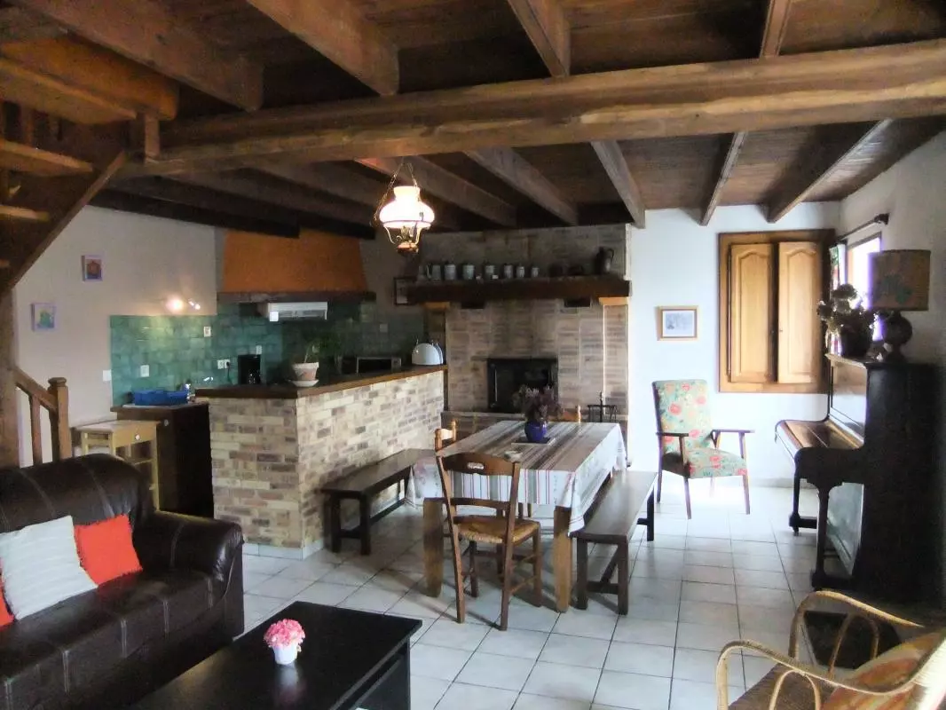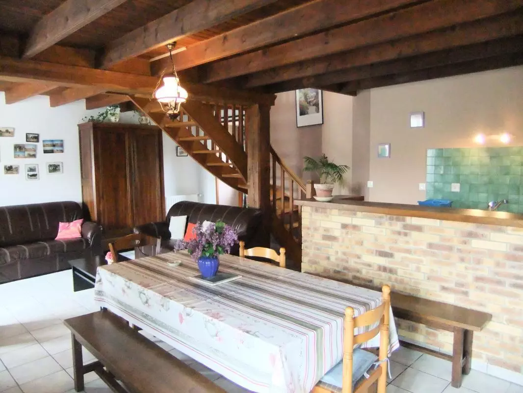 Maison mitoyenne à une habitation. Séjour. Coin-cuisine. CH 1 : 1 lit 140. CH 2 : 1 lit 140 + 1 lit 90. 1 lit bébé. Salle de bains. Wc. Cheminée insert. TV. Lave-linge. Draps en location. Ling de maison non fourni. Service ménage en supp. Chauffage central en supplément. Terrain clos privé. Salon de jardin. Barbecue. Une mise au vert garantie dans cette maison de campagne, avec tous les avantages d'une station balnéaire toute proche comme Barneville Carteret.
