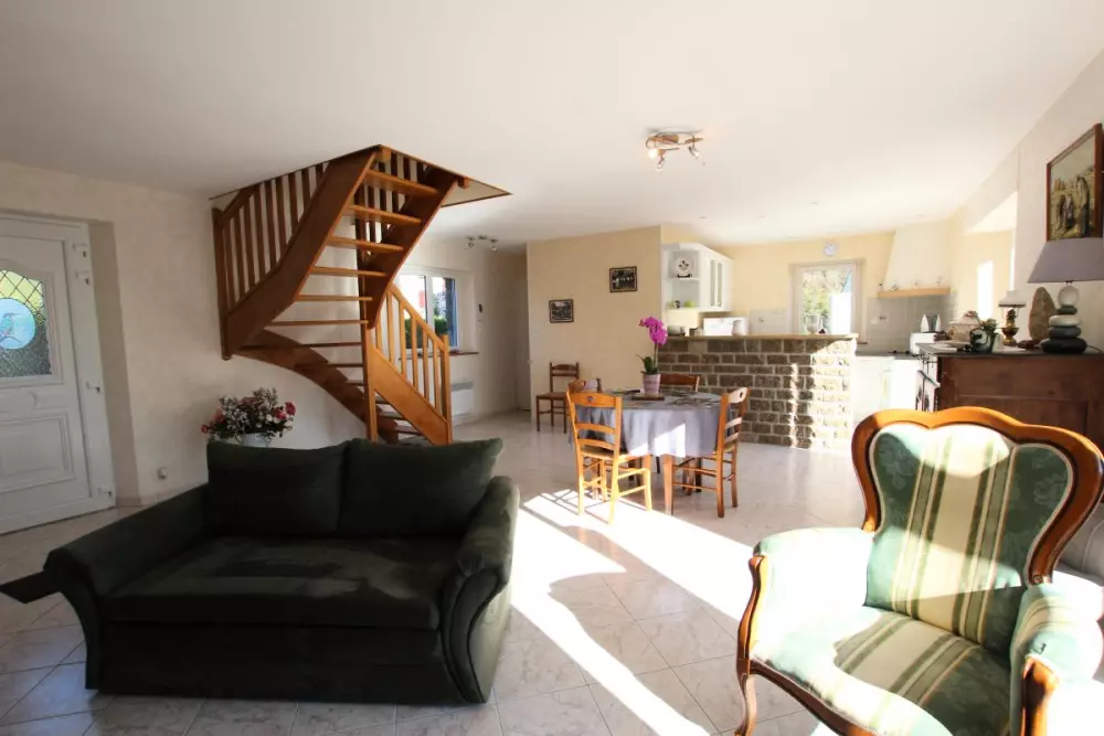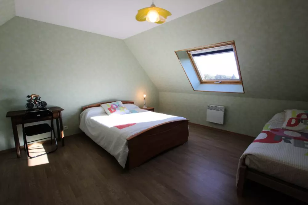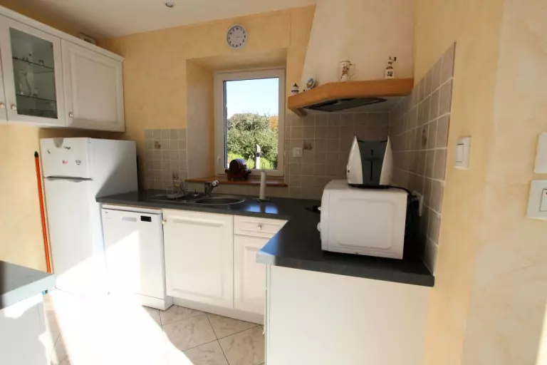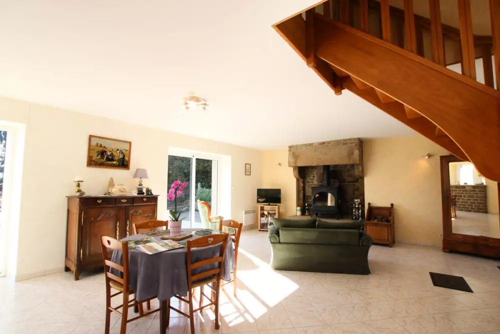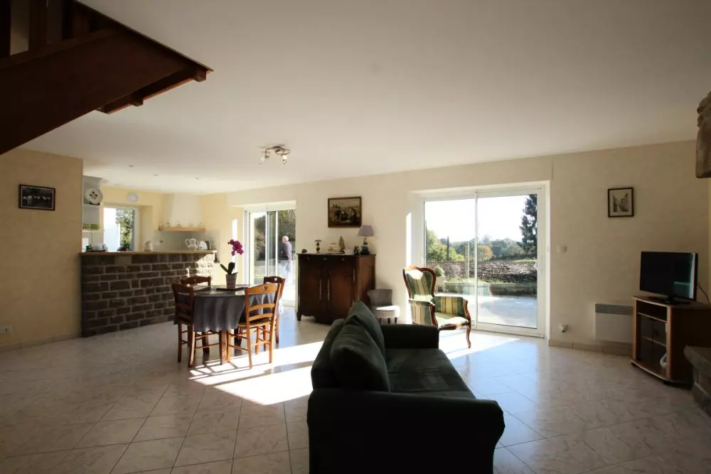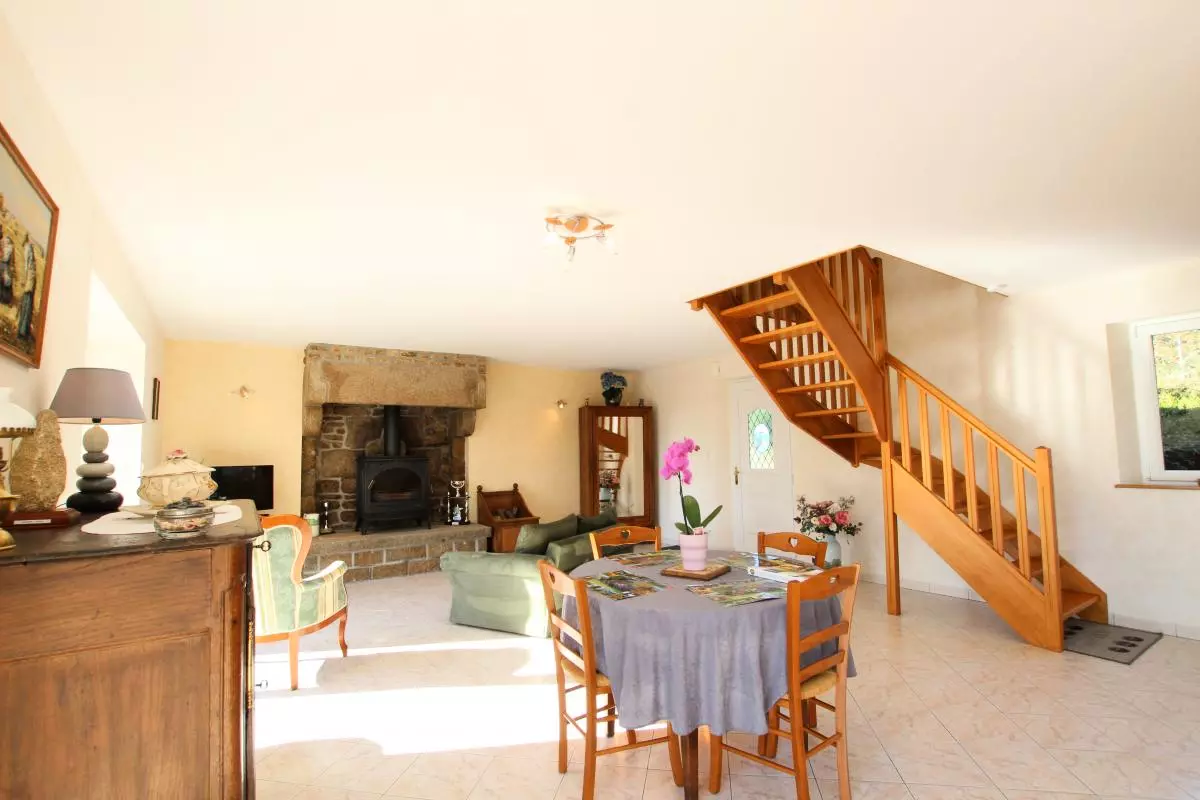 Maison indépendante. Séjour. Coin cuisine. Chambre 1 : 1 lit 140. Chambre 2 : 1 lit 140 et 1 lit 90. Salle d'eau. WC. TV. Lave-vaisselle. Lave-linge. Cheminéee. Chauffage électrique inclus. Draps en location. Linge de maison non fournis.Terrain clos privé. Barbecue. Salon de jardin. Garage. Ce beau territoire bocager et escarpé est le pays du granit. Cette roche affleure un peu partout et marque bien sûr le paysage et le bâti. C'est donc un bel espace de randonnées qui s'offre à vous depuis ce gîte spacieux. Musée du Granit sur la commune. Lac de la Dathée (Golf, Kayak) à 7km.
