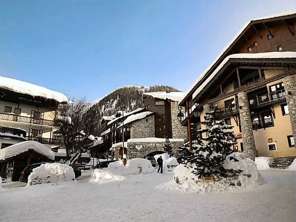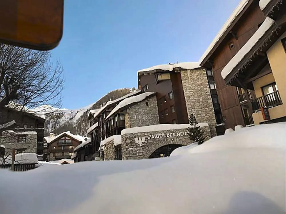 Dans le centre du vieux village de Val d'Isere, à 100m des remontées mécaniques et à deux pas des pistes, l'hôtel Latitudes l'Aigle des Neiges, entièrement rénové, arbore un style savoyard avec sa structure en bois, en pierre et son toit en lauzes.