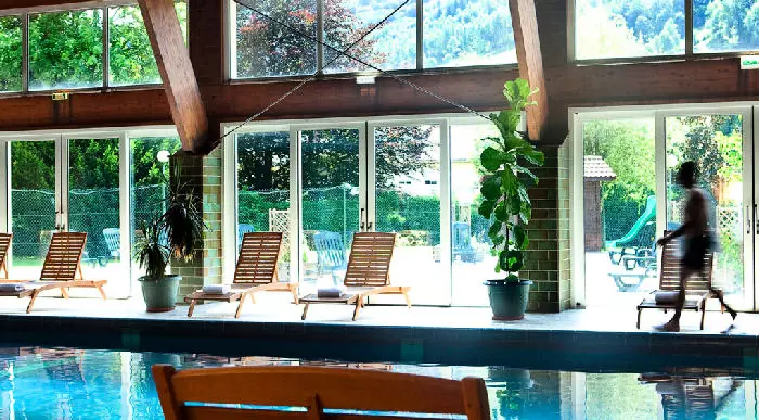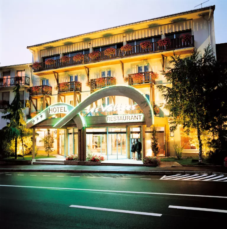 Riche d'un parc arboré, l'hôtel Les Vallées dispose d'un espace bien-être et détente, avec une piscine de 18m, hammam, sauna, jacuzzi et une offre de modelages (corps et visage). Les enfants profitent d'une salle de jeux (ping-pong, vidéo...) et de la possibilité de dîner plus tôt (18h30). Accueil personnalisé à la réception 7 jours / 7 et 24h / 24. Les salons équipés de connexion Wifi (gratuite) donnent dès l'entrée le ton d'un confort qu'accentuent les touchent contemporaines d'un décor de bois et de granit de bon goût. Le nappage ivoire et chocolat du restaurant, aéré et lumineux, confirme ce partis pris de modernité, même si l'on y défend le patrimoine gastronomique.