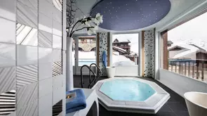 Résisterez-vous au spa Les Bains du Montana ? Il s'ouvre sur une piscine extérieure nordique chauffée à 30°C avec hammam, jacuzzi, salle de relaxation et tisanerie. Rien de mieux pour vos vacances à la montagne !