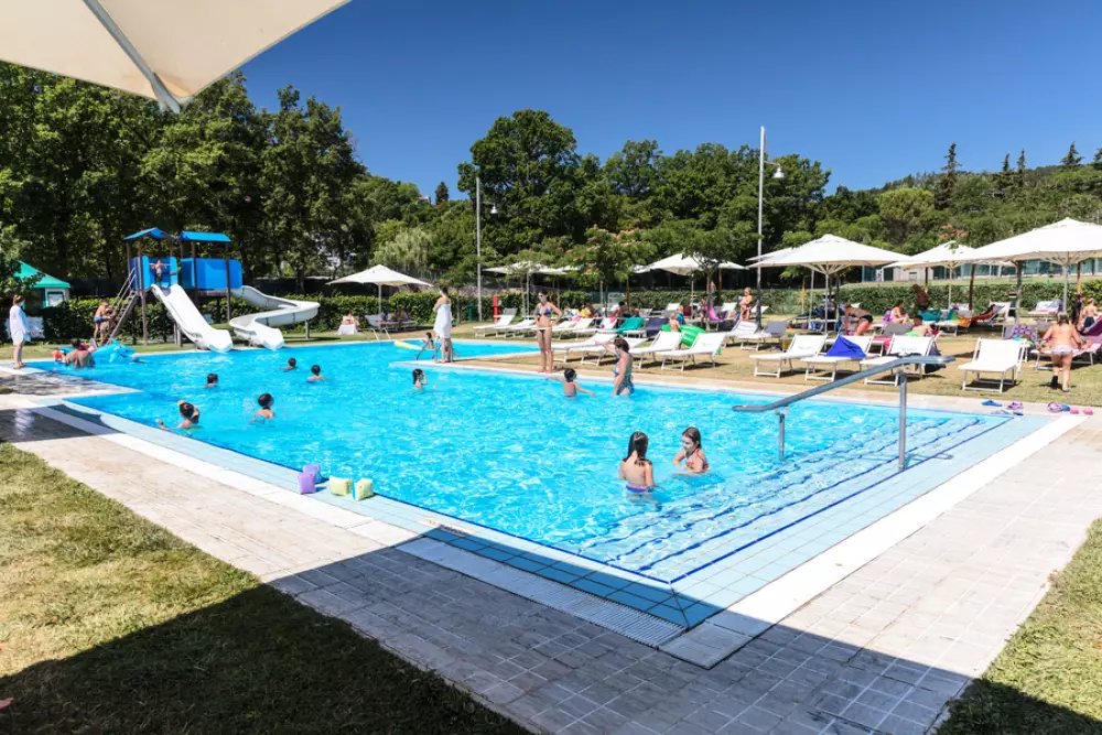Le Camping Parco Delle Piscine bénéficie d'un espace aquatique qui assure amusement et détente tout au long de la saison :