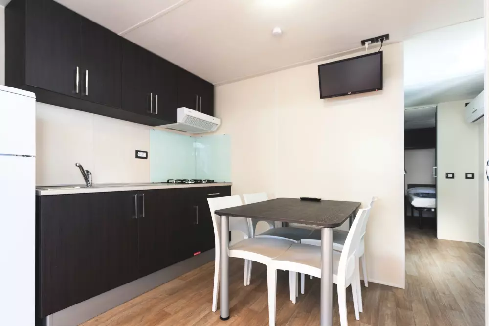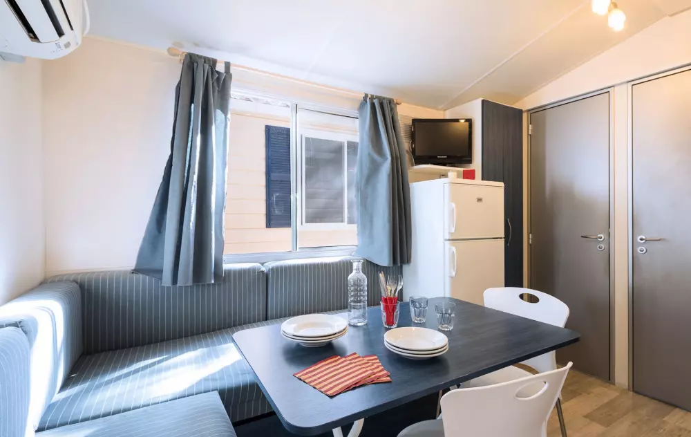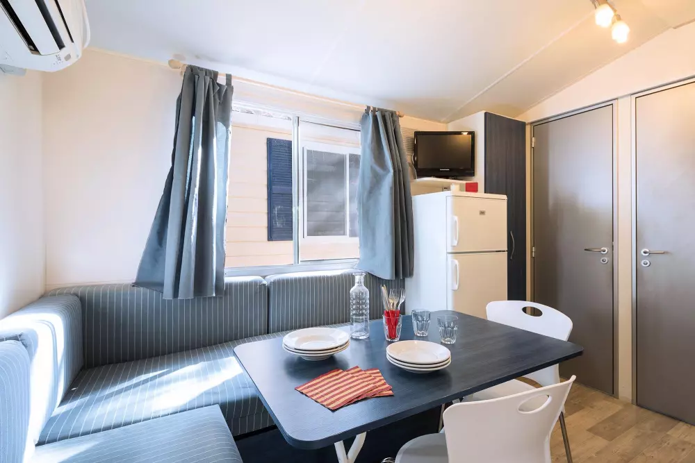 La zone Village offre un large choix de mobil-homes, avec TV-SAT et aire conditionné, et de caravanes. La zone Camping présente trois types d'emplacements, reliés à l'électricité, dont certains profitent d'une position panoramique sur la mer.