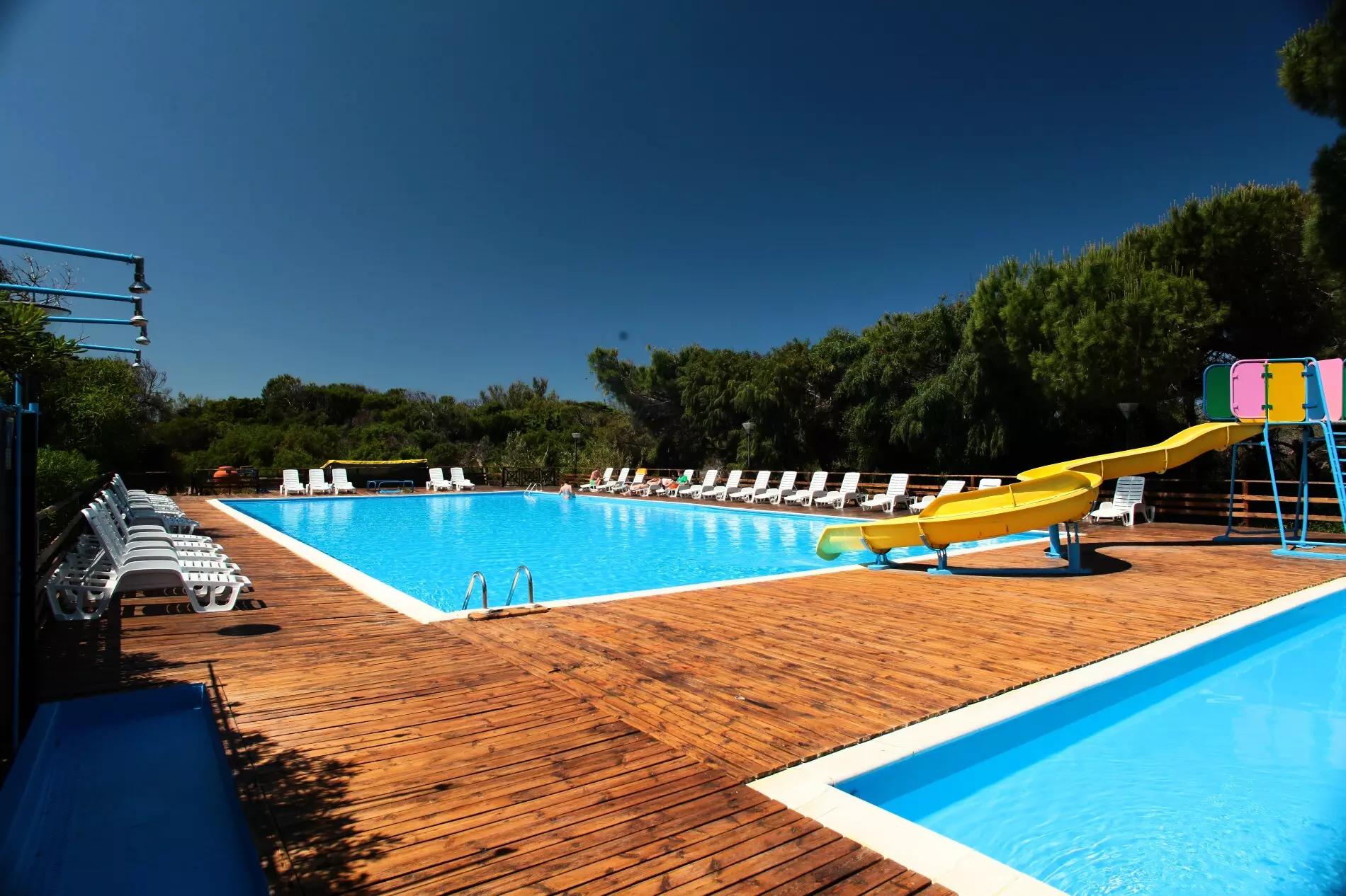Tous les jours, vous pourrez vous rafraîchir dans l'espace aquatique du camping, composé d'une grande piscine et d'un petit bassin pour les plus jeunes. Ces derniers pourront aussi s'amuser dans les jeux aqua ludiques et les grands toboggans.