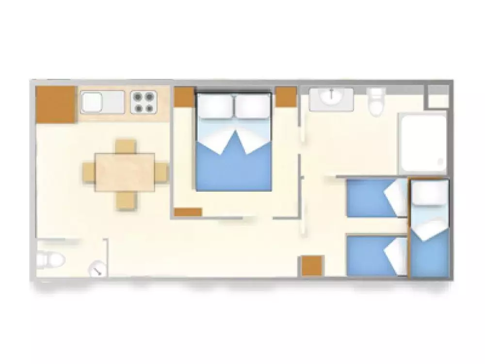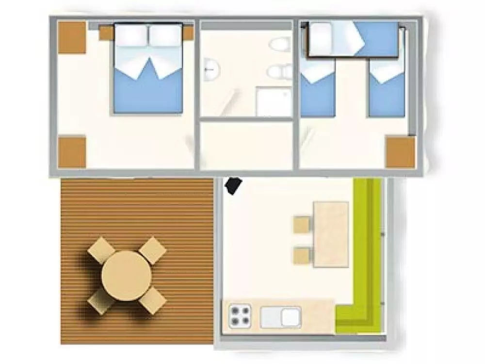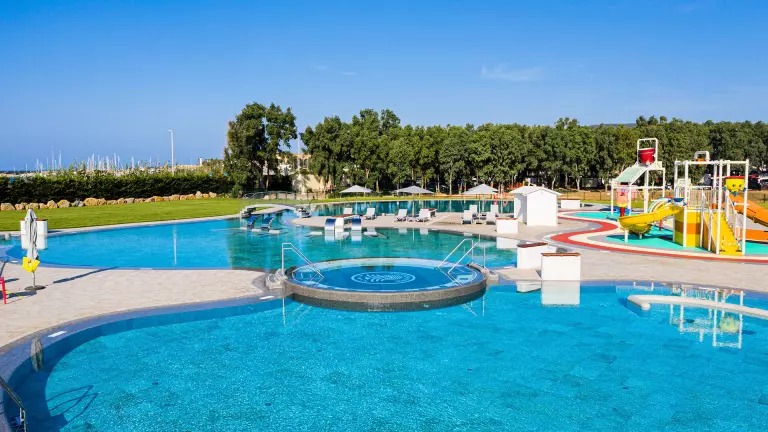 Vous pourrez passer vos vacances au Camping Village Laguna Blu en profitant des emplacements de la zone Camping, en tente, roulotte ou camping-car, ou bien en mobil-homes dans la zone Village.Sont également disponibles des chambres en bâtiments.