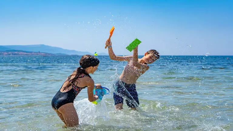 Vous pourrez profiter de vos vacances sur la plage de sable blanc adjacente au Camping Village Laguna Blu ou bien découvrir d'autres plages aux alentours d'Alghero et du Camping Village.