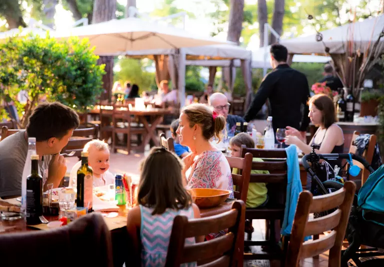 Les options de restauration incluent un restaurant grill et une pizzeria, deux bars à cocktails, un glacier, un restaurant à la carte, une pizzeria et des plats à emporter (restaurant T-pop, bar Italia et Glacier ouverts à partir du 20/04).