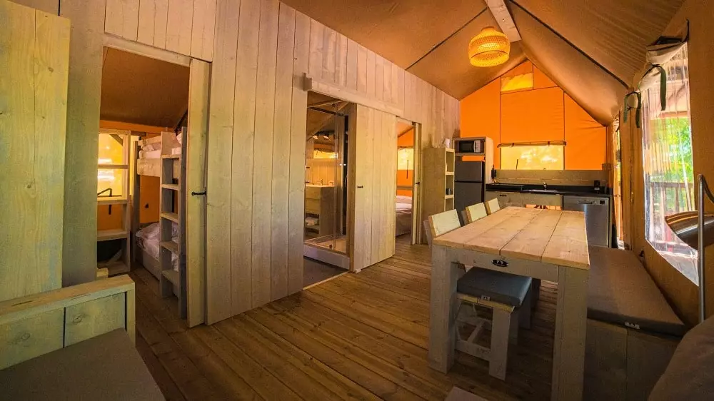 The Glamping offers hospitable, luxurious and comfortable accommodations designed to satisfy every requirement. Whether you choose a glamping tent, a mobile home or a camping pitch, you will always be guaranteed a holiday of comfort and contact with nature. The resort also features high-quality attractions and services, such as a beautiful lagoon, swimming pools for adults and children, sports fields, a theatre and two fantastic beaches.