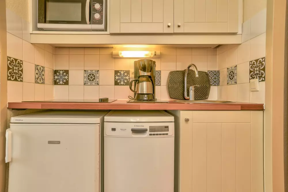 - Kit d'entretien : Inclus - contenu peut varier selon les résidences : éponge, lavette, flacon de produit multi-usages, flacon de produit liquide vaisselle main, tablette lave-vaisselle et torchon.