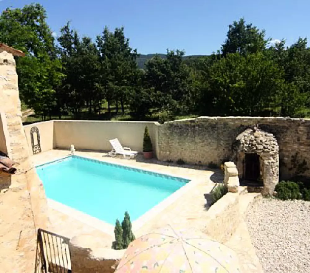 Entre Malaucène et Entrechaux, à 10 km du centre de Vaison la Romaine, 2 km de Malaucène, en pleine campagne, vous passerez d'agréables vacances dans cette jolie ferme Le Petit Domaine restaurée avec goût, cour intérieure avec piscine, sur un beau terrain arboré de 2500m².