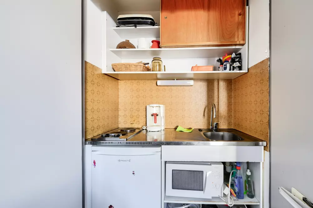 - Kit d'entretien : Inclus - contenu peut varier selon les résidences : éponge, lavette, flacon de produit multi-usages, flacon de produit liquide vaisselle main, tablette lave-vaisselle et torchon.