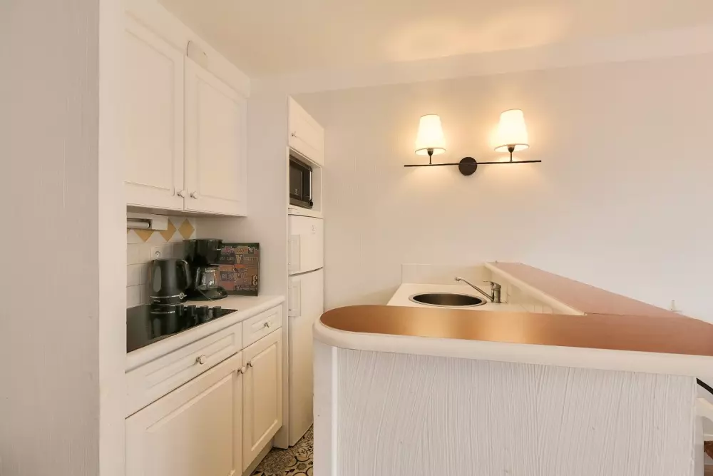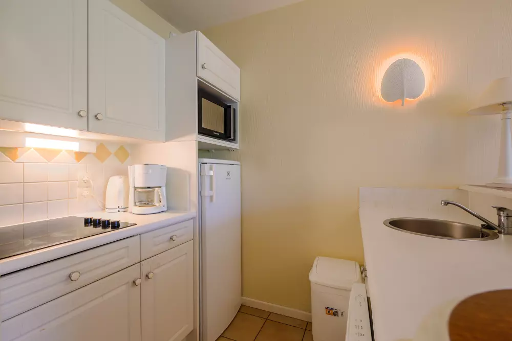 - Kit d'entretien : Kit entretien (1 éponge, 1 lavette, 1 flacon de produit multi-usages, 1 flacon de produit liquide vaisselle main, 1 tablette lave-vaisselle et 1 torchon : peut varier selon les résidences).