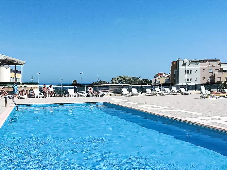 Résidence accueillante "Résidence Sablotel". Dans le quartier de, situation centrale, à 100 m de la mer. En commun: piscine (15 x 5 m, profondeur 130 - 220 cm, 15.04.-15.09.). Bassin pour les enfants, espace de jeux pour les enfants. A usage privé: jardin (clôturé). Infrastructures de la résidence: ascenseur, terrasse ensoleillée. Place de parking sur le terrain. Magasins, magasin d'alimentation, restaurant 50 m. Terrain de golf (27 trous) 2.8 km. Veuillez noter: La photo ne montre qu?un exemple de location de vacances. La résidence dispose d'une seconde piscine avec eau de mer (7 x 4 m, profondeur 140 - 200 cm, 15.04.-15.09.).