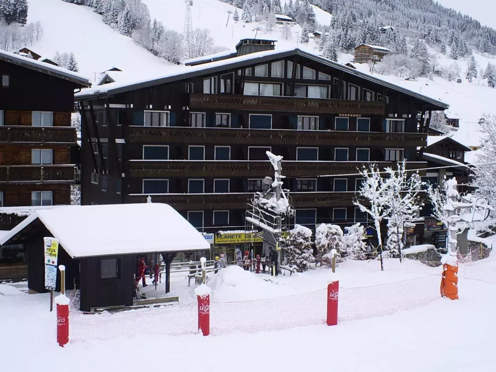 Centre village 2 étoiles Exposition : Sud / Est, Vue sur les pistes Balcon 6m2, Mobilier de jardin Casier à ski privatif VTT Bienvenus, Local à vélo privatif, 2 vélos maximum suspendus par des crochets, Il est interdit d'entrer les vélos dans le logement A moins de 200m des pistes 70 m de la télécabine des Chavannes, 550 m de la télécabine du Mont Chéry 270 m de l'école de Ski Français, 270 m de l'office de tourisme, 1600 m du lac de baignade, 550 m de la gare routière