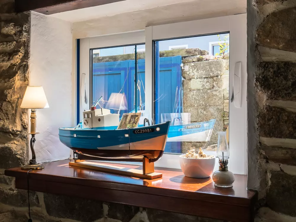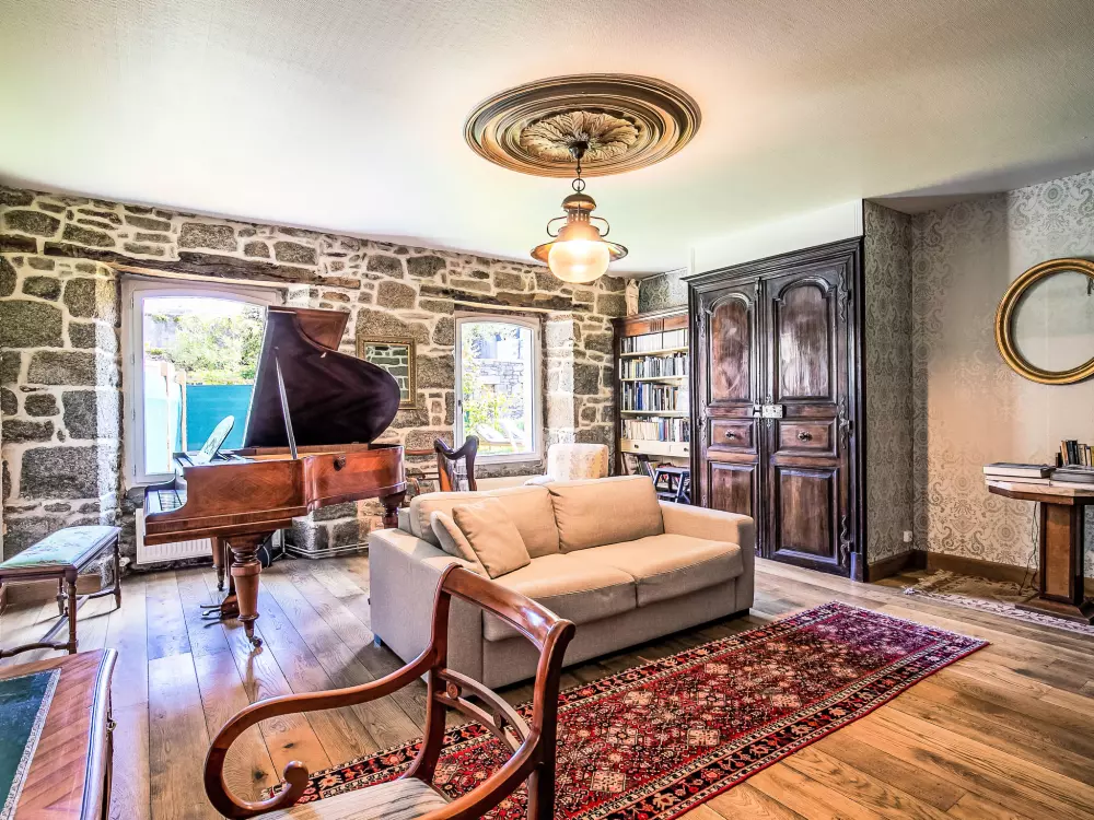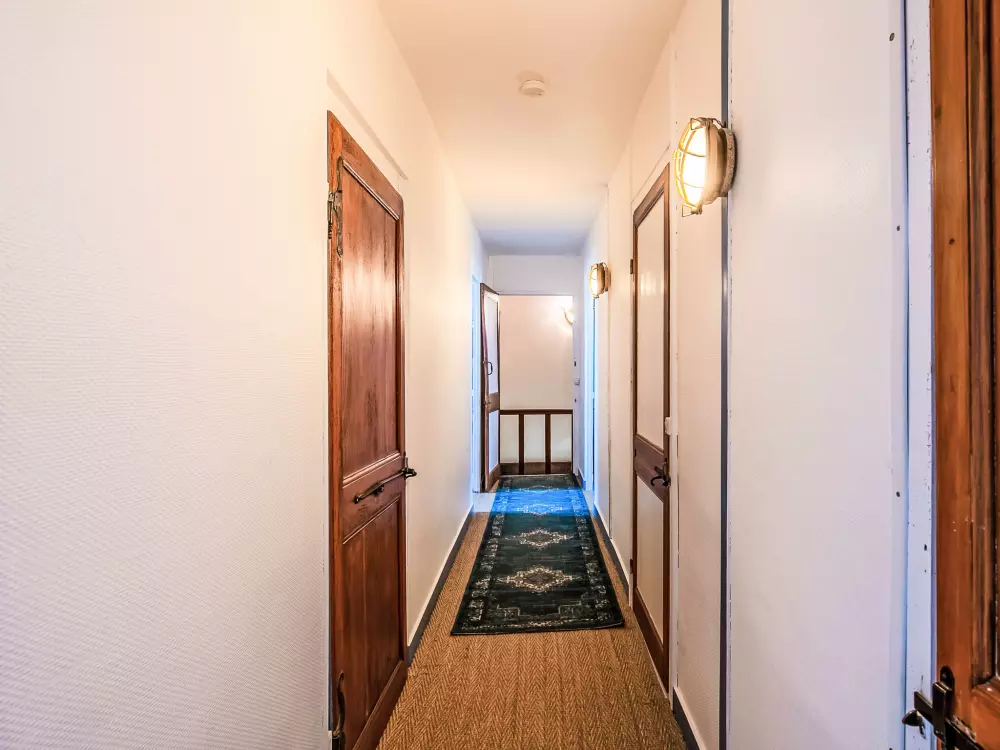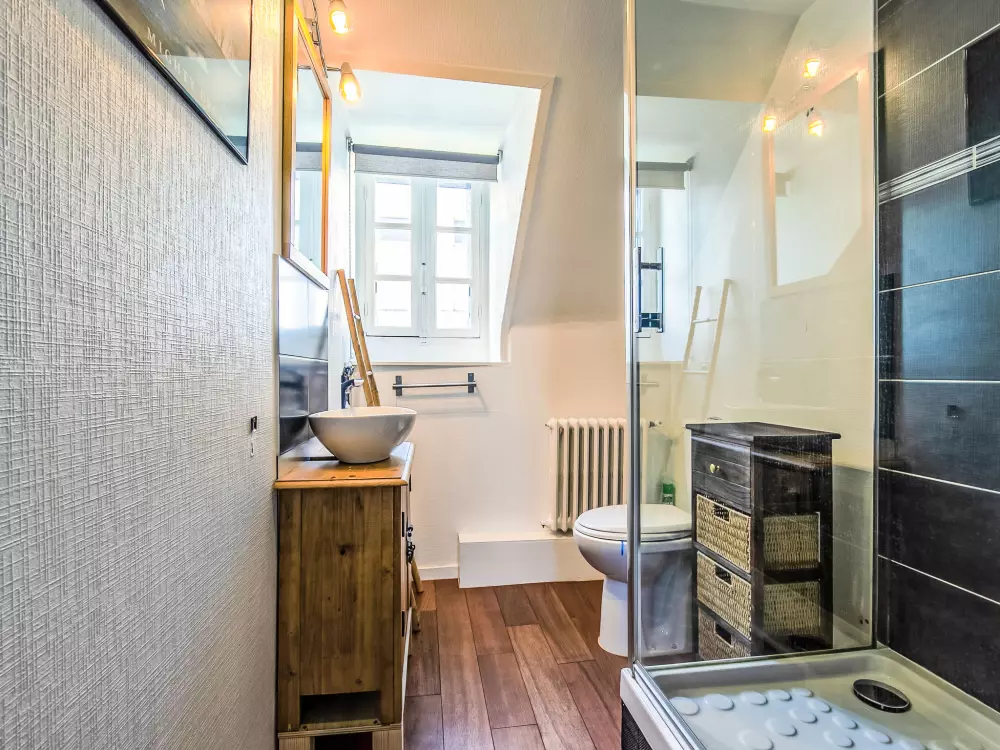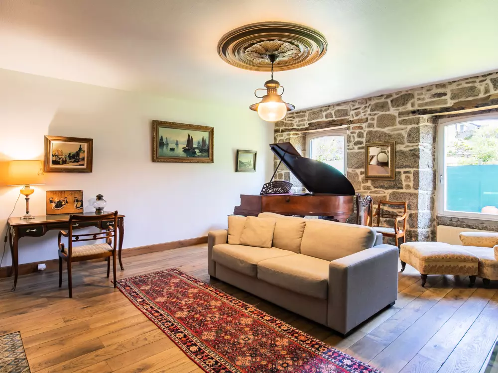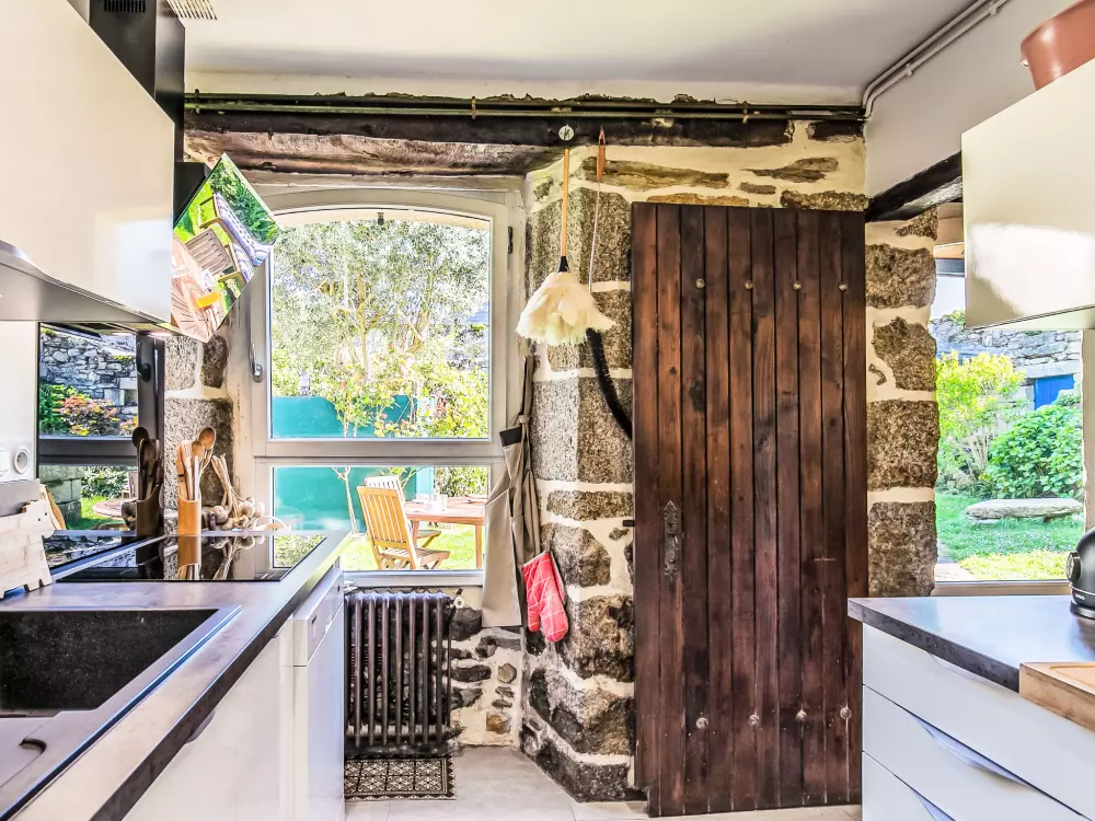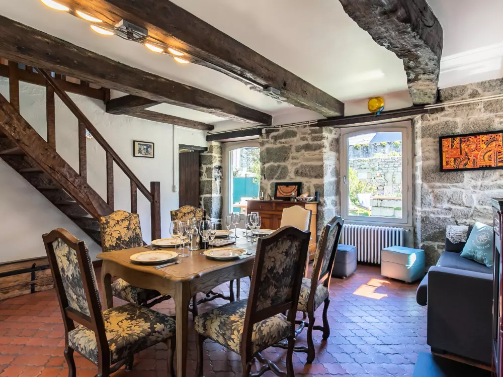 Concarneau: Belle maison individuelle accueillante, historique "Maison Duquesne", du 17ème siècle, rénovée. Dans le quartier de La Croix, à 100 m du centre de Concarneau, excellente situation: centrale mais tranquille, à 100 m de la mer, à 300 m de la plage. A usage privé: jardin entretenu 250 m2 (clôturé) avec pelouse et plantes, place de parking près de la maison. Magasins 200 m, magasin d'alimentation 300 m, centre commercial 3 km, restaurant 50 m, boulangerie 500 m, café 80 m, zone piétonne 300 m, centre à 5 minutes à pieds, arrêt de bus "au port" 550 m, plage de sable "Plage de Rödel" 500 m, piscine couverte 5 km, centre thermal "Thalasso Concarneau" 2 km. Port plaisance 100 m, terrain de golf (10 trous) 10 km, ecole de voile, chemins de randonnées pédestres depuis la maison 80 m. Attractions à proximité: Ville Close 300 m, Pont Aven, village des Peintres 17 km, Pointe de Trévignon 18 km, Kerasco?t et Port Manec'h 19 km, Raguénez et Plage de Tahiti 18 km, Quimper 30 km. Région de randonnées: GR34, sentier des douaniers 50 m.