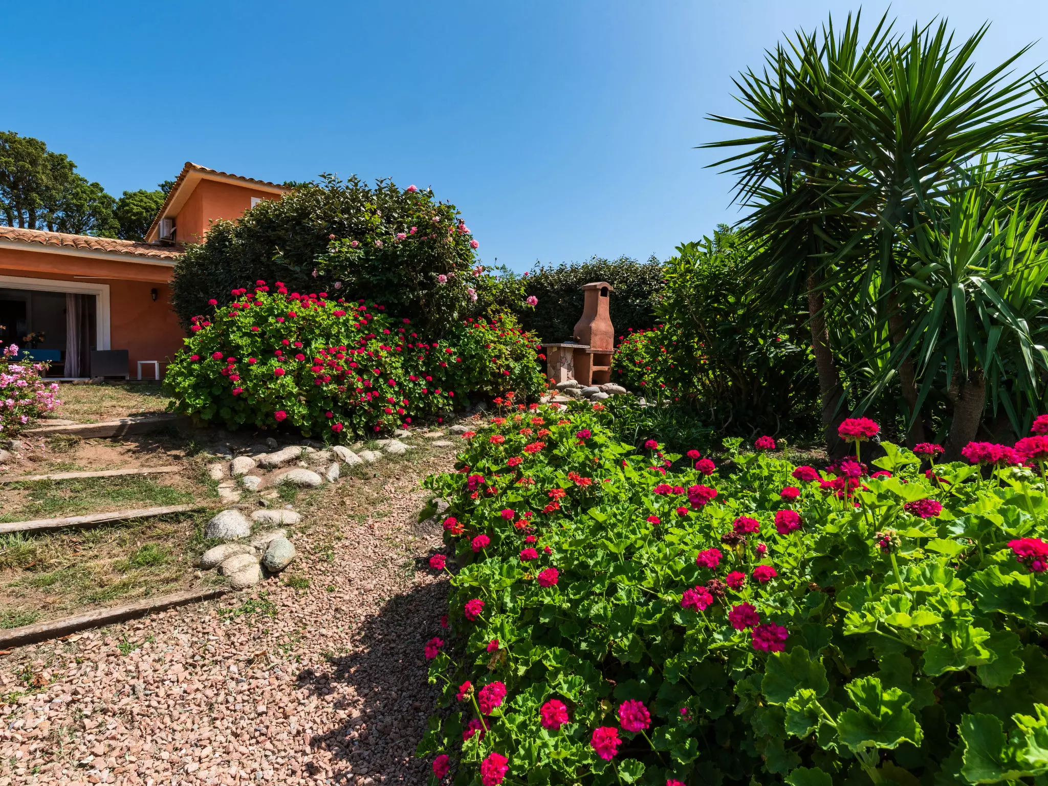 Belle villa "Gelormini", environnée par les arbres et champs. 3 appartements dans la même entité. À 4 km du centre de Ghisonaccia, à 2 km du centre de Migliacciaru en-dehors de la localité, à 57 km du centre de Porto-Vecchio, situation ensoleillée, à 4 km de la mer, dans la verdure. En commun: terrain 1'000 m2 avec plantes et arbres, jardin naturel, champ, piscine (14 x 7 m, disponibilité saisonnière: 01.Mai. - 30.Sep.). Douche extérieure, terrasse, place de parking sur le terrain. Magasins 2 km, supermarché 4 km, arrêt de bus 4 km, plage de sable 4 km. Veuillez noter: voiture recommandée.