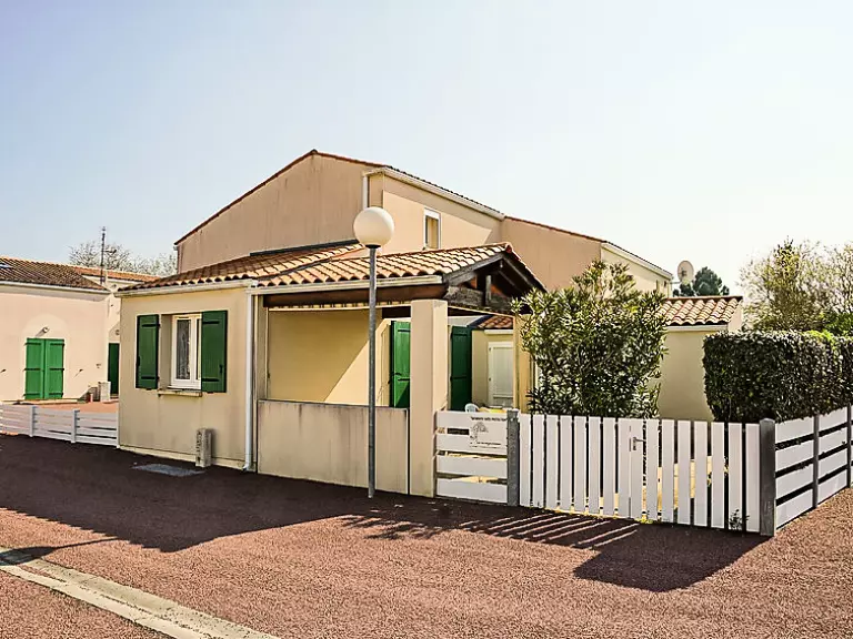 Dolus d'Oléron: Petit lotissement de vacances "Le Hameau de La Grande Baie". En-dehors de la localité, à 200 m de la mer. En commun: jardin (clôturé). Espace de jeux pour les enfants, place de parking sur le terrain, garage individuel. Magasins 3 km, plage de sable 200 m. Terrain de golf 7 km.