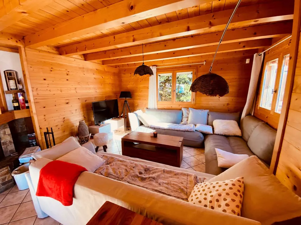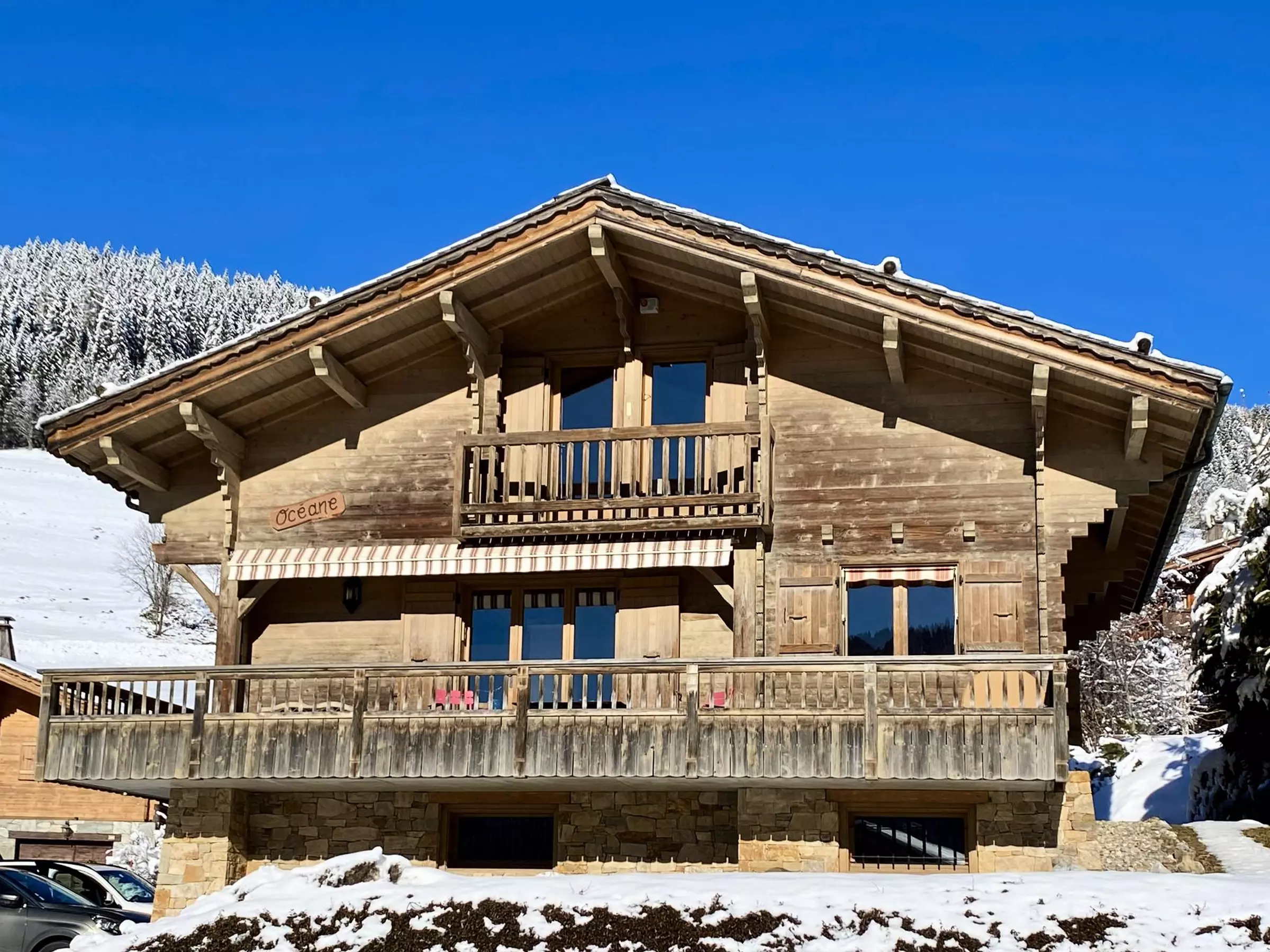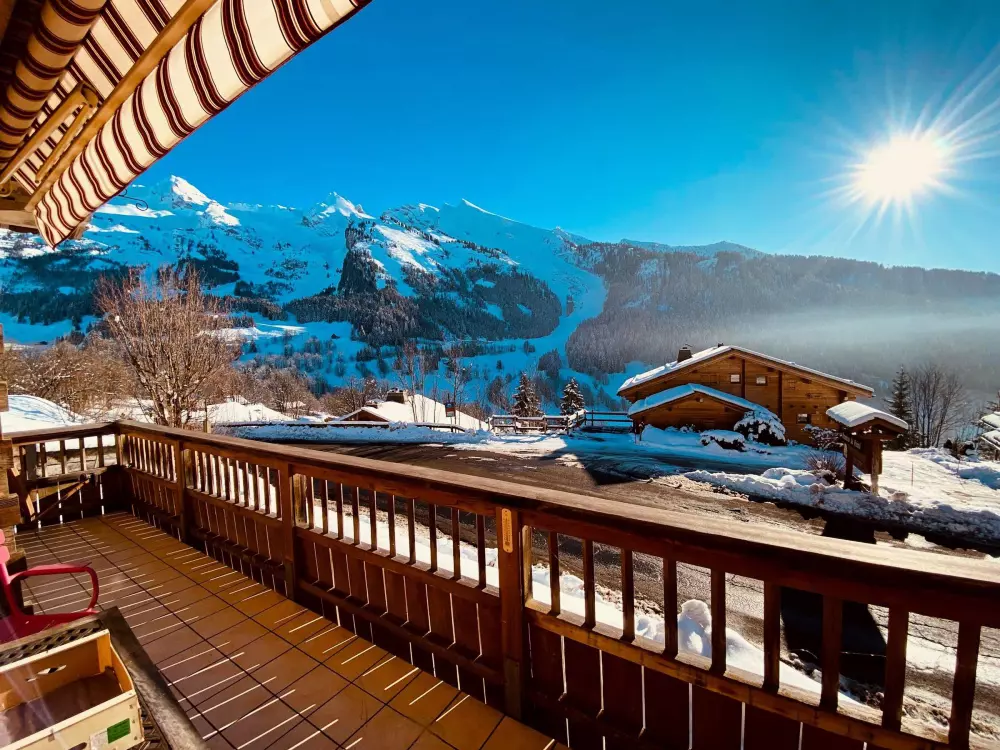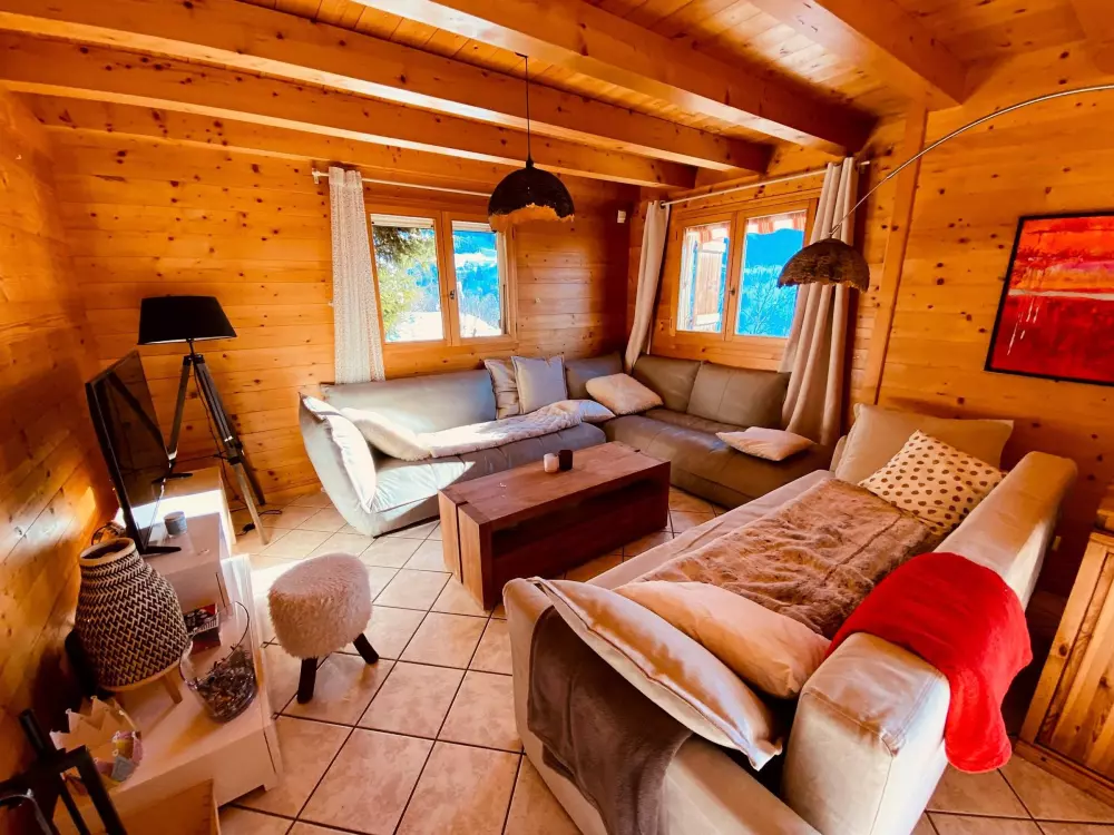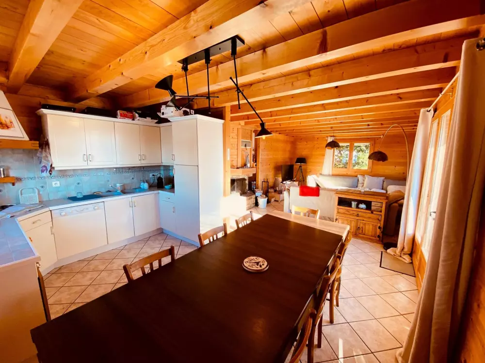 LA CLUSAZ - VALLEE DES CONFINS - CHALET "L'OCEANE" Joli chalet madrier - Ensoleillement exceptionnel - Vue panoramique sur les Aravis et Beauregard - 3092 route de Plattuy - quartier de Prerol - Joli chalet madrier 4 chambres pour 8 personnes d'une surface habitable de 113.41 m² (95.04 m² + 18.37 m² < 1,80m + 48.64m² de garage et buanderie + 26.35 m² de balcons & Terrasse - Construction de 1999 - A 3,5 km du centre de La Clusaz, à 800 m des remontées mécaniques de Balme et à 1600 m des pistes de ski de fond - Arrêt ski bus à proximité.