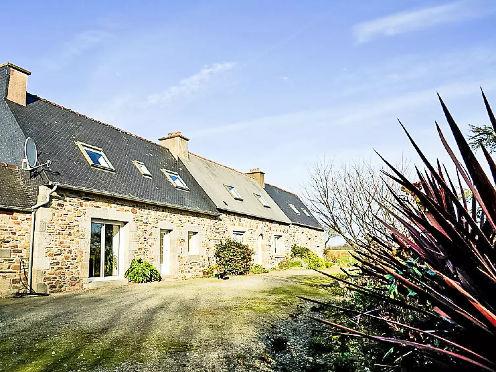 Rospez à 8 km de Lannion: Maison à 3 apts "Poul Ar Born", environnée par les arbres et champs. En-dehors de la localité, à 8 km du centre de Lannion, situation isolée, à 10 km de la mer, à 10 km de la plage, dans la verdure, en bordure du terrain de golf. En commun: terrain 18'000 m2, jardin (pas clôturé) avec pelouse 1'000 m2, fleurs, cour. Infrastructures de la Maison: lave-linge, sèche-linge (en commun). Place de parking sur le terrain. Magasins 8 km, magasin d'alimentation 8 km, supermarché 8 km, restaurant 500 m, gare ferroviaire "Lannion" 7 km, plage de sable "Trevou" 10 km, parc "ArmoriPark" 13 km, piscine couverte 7 km. Port de plaisance 10 km, terrain de golf (18 trous) 12 km. Attractions à proximité: Ploezal 17 km, Trelevern 9 km, Ploulec'h 9 km, Trevou 10 km. Veuillez noter: voiture recommandée. Équipement pour bébés sur demande (inclus). Le propriétaire habite sur le même terrain. La photo du catalogue n´est qu´un exemple. D?autres appartements sont également proposés à la location dans cette maison de vacances. La propriété référencée FR2869.106.1 est située sur le même terrain. Maison divisée en 3 parties mitoyennes dont une est occupée par les propriétaires, possibilité de louer cet appartement avec le FR2869.106.1.