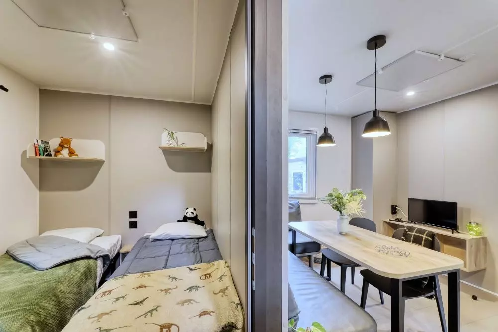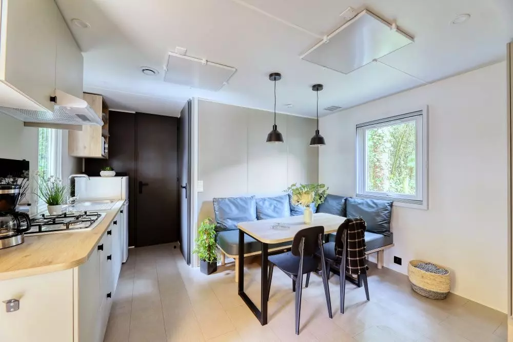 Situé dans un cadre naturel exceptionnel de 7 hectares de verdure, à 2 pas du centre-ville de Nantes, Nantes Camping est le lieu idéal pour partir à la découverte de la fabuleuse Cité des ducs et de sa région, depuis le vignoble nantais jusqu'à la côte atlantique. Sur place, vous profitez d'hébergements contemporains de qualité entièrement meublés et équipés. Tous disposent d'un salon avec TV écran plat, d'un coin cuisine équipée, de 1 à 4 chambres, de 1 à 3 salles de bain, d'une terrasse privative aménagée et meublée. En plus du cadre idyllique de Nantes Camping, vous bénéficiez de services 5 étoiles : WIFI haut débit gratuit, bar/guinguette/épicerie Le Bivouac, piscine extérieure (ouverture de juillet à août), Hammam (25€/30min), aires de jeux pour enfants, équipements sportifs extérieur, mini-golf, accès gratuit à la piscine du Petit Port toute l'année (à 100m du camping).
