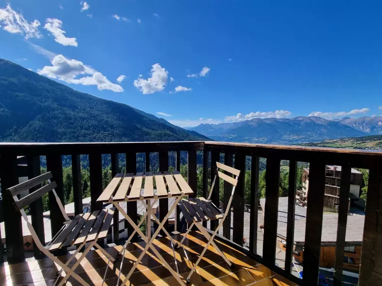 Depuis votre balcon, vous apprécierez la vue dégagée sur l'Embrunais et le lac de Serre-Ponçon.