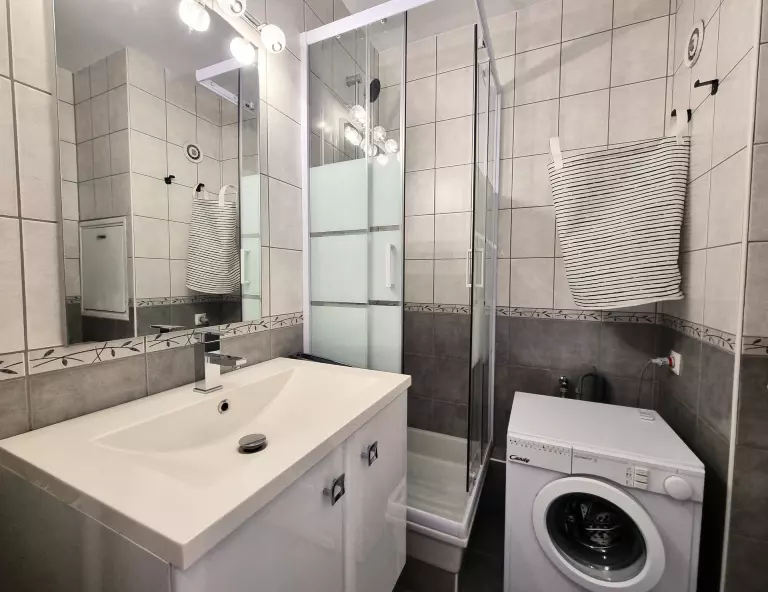 La salle d'eau est composée d'une douche, mais également d'un sèche-cheveux et d'un lave-linge pour alléger vos valises.