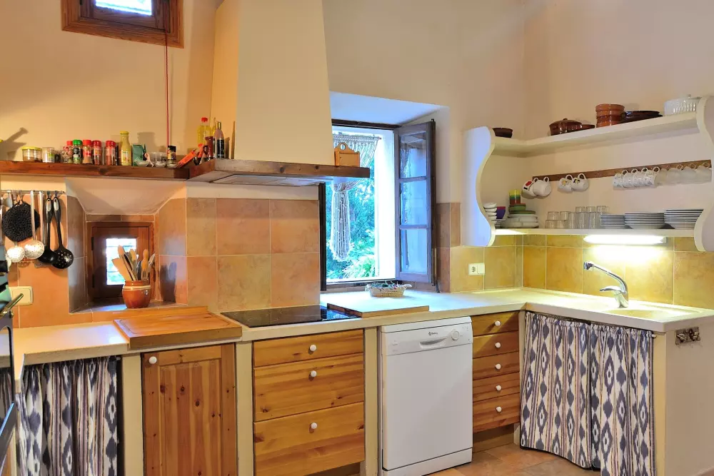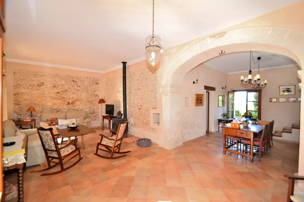 La maison vous accueillera au rez-de-chaussée avec un salon et une salle à manger très confortables, de style rustique majorquin et avec une décoration de haute qualité. La cuisine, indépendante avec plaque vitrocéramique et bien équipée, à côté de la grande salle à manger. Une chambre, une buanderie et une salle de bain se trouvent au rez-de-chaussée, les autres sont à l'étage.