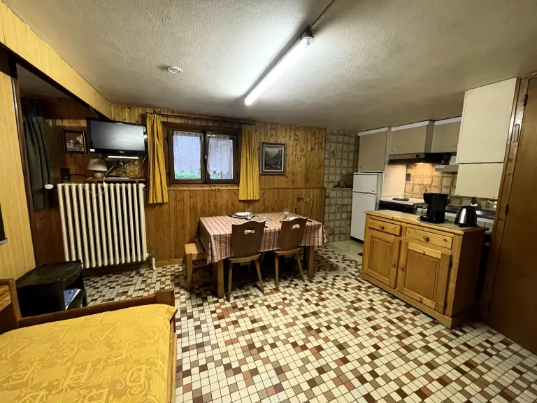 Appartement sommaire, situé dans le centre, construit en 1955, dans une résidence de 10 appartements, A proximité des commerces alimentaires et établissements de nuit, des garderies et activités pour les enfants, de la patinoire en hiver, à 100 mètres des départs de ski alpin (CHAMP GIGUET) et ESF et aussi de ski de fond (télécabine de Beauregard). Grande cour privée. En bordure d'un cours d'eau.