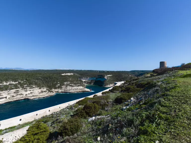 Bonifacio est accessible via la route T40 depuis Ajaccio ou Porto-Vecchio. Depuis le nord de la Corse, suivre la T10 jusqu'à Porto-Vecchio, puis la T40 vers le sud. Des ferries permettent également de rejoindre la Corse depuis le continent, notamment depuis Marseille, Toulon ou Nice, avec des arrivées à Ajaccio, Propriano ou Porto-Vecchio.