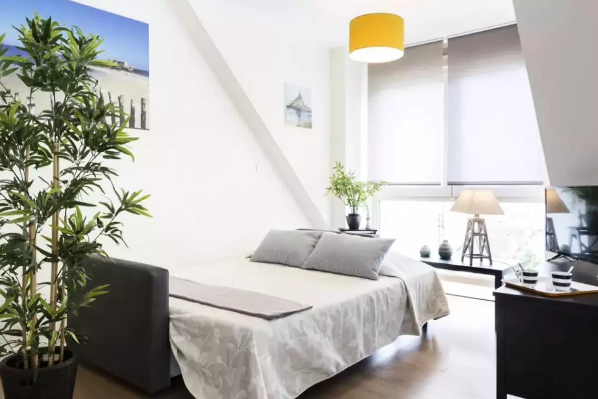 - une chambre avec un lit double et un canapé convertible dans le salon;