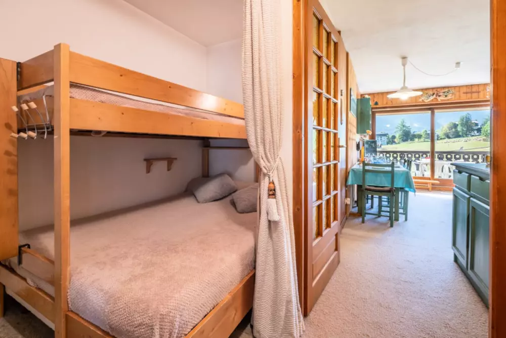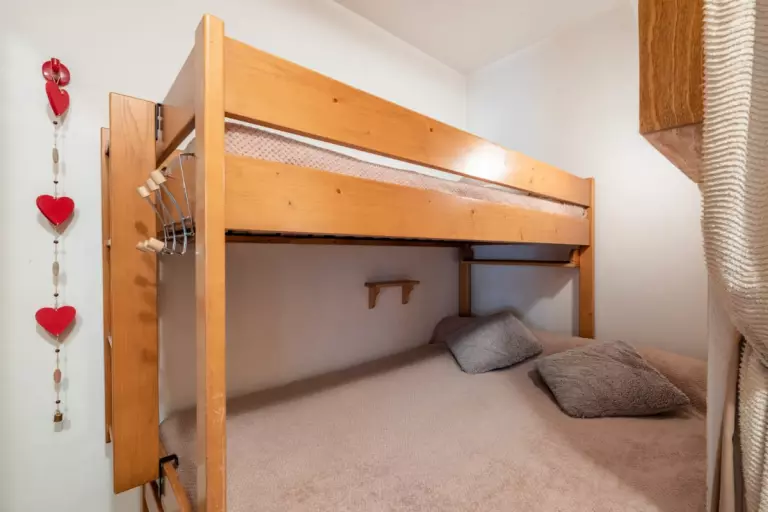 - un coin montagne avec un lit double et un lit simple (en hauteur) ;