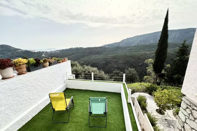 - une grande terrasse meublée pour profiter de la vue remarquable sur les iles de Lérins et la mer ;