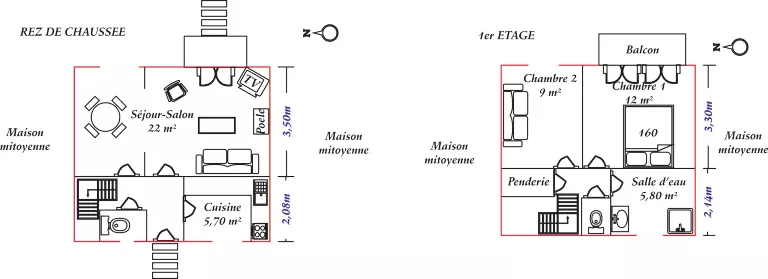 - 1 chambre (1 lit 2 personnes 160x200cm),