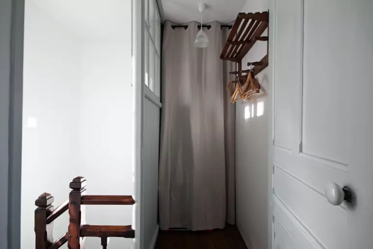 - salle d'eau avec douche grandes dimensions, grand placard penderie.
