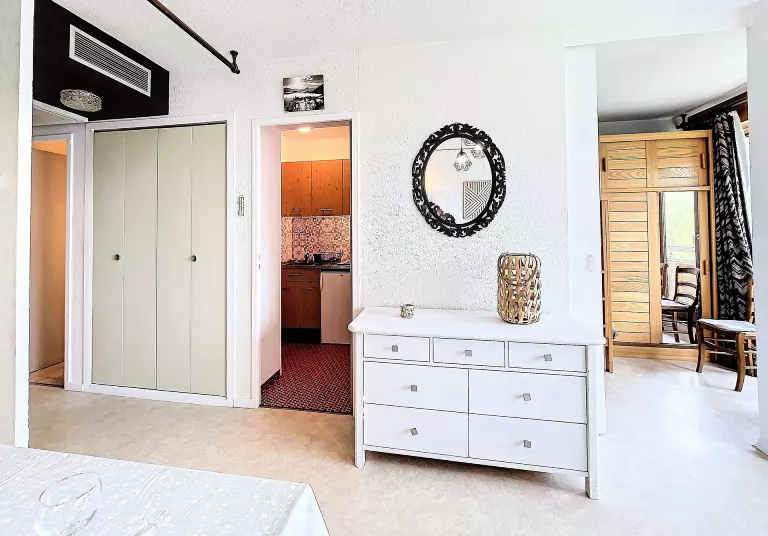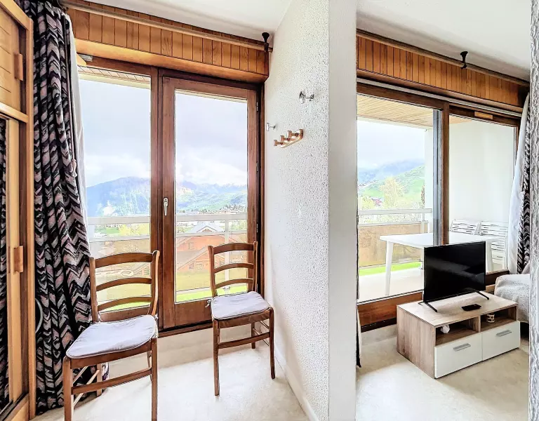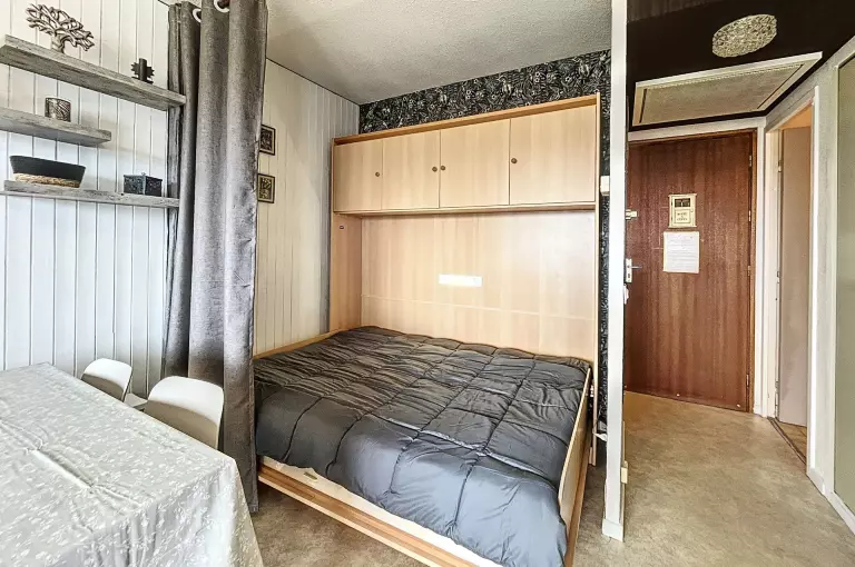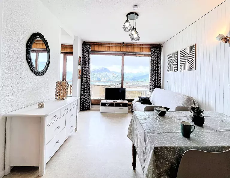 Un séjour agréable et bien décoré, au mobilier chaleureux avec 1 canapé lit clic clac en 130X190 pour 1 personne, une télévision écran plat, et un bon lit rabattable en 140X190 pour 2 personnes. La pièce ouvre sur un large balcon doté d'une table et de chaises, avec vue imprenable sur la station de La Toussuire.