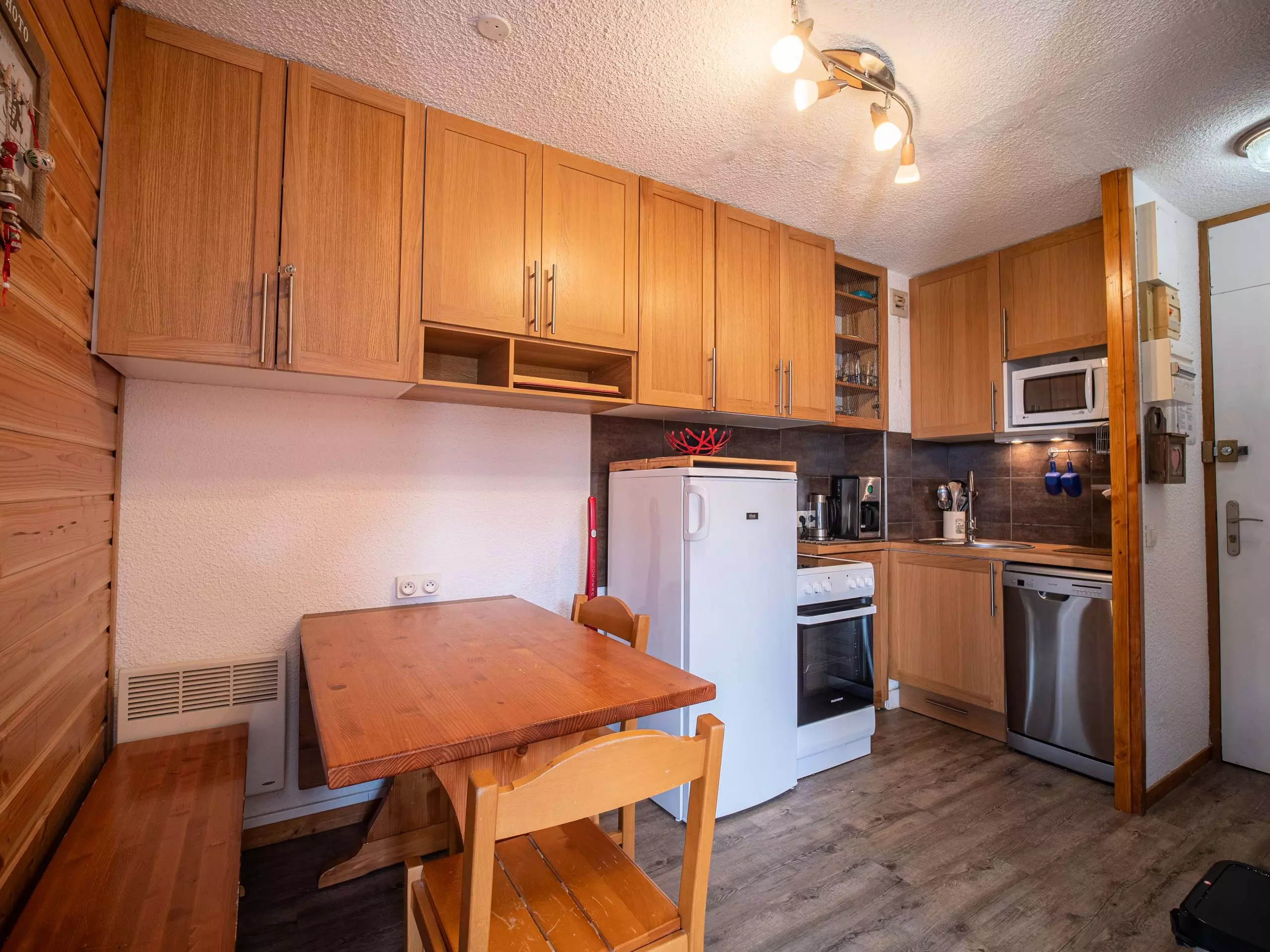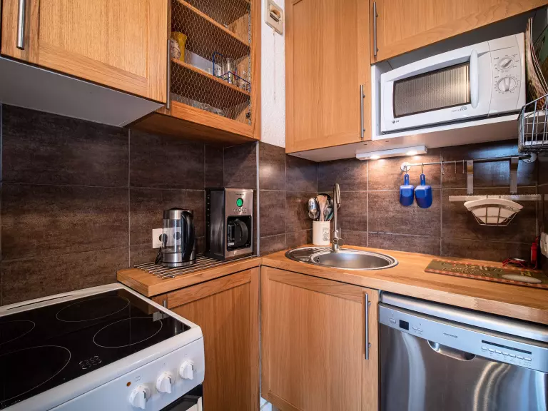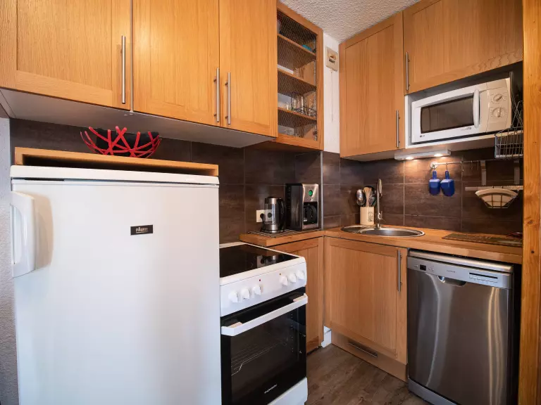 - Cuisine ouverte sur séjour équipée de 4 plaques vitrocéramiques, lave vaisselle, four,réfrigérateur.