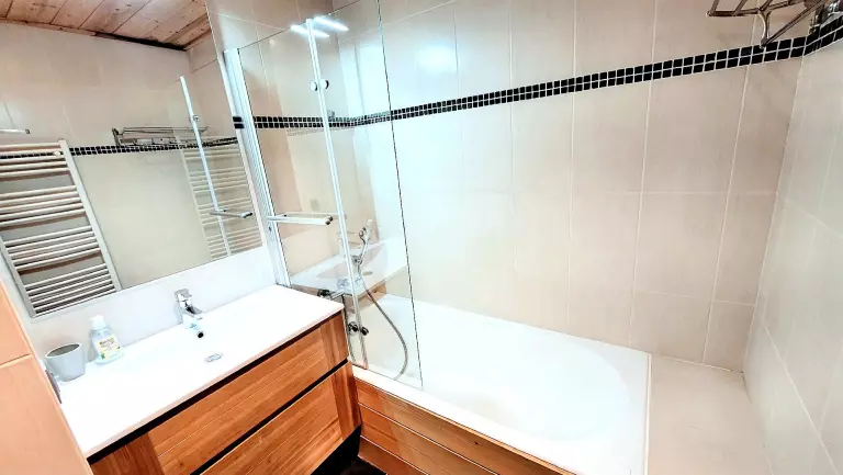 - 1 salle de bains avec baignoire et sèche-serviette.