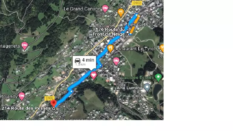 itinéraireParis - Les Gets = Paris - Mâcon Nord (A6), Annemasse - Cluses (A40), Cluses - Les Gets (D902).